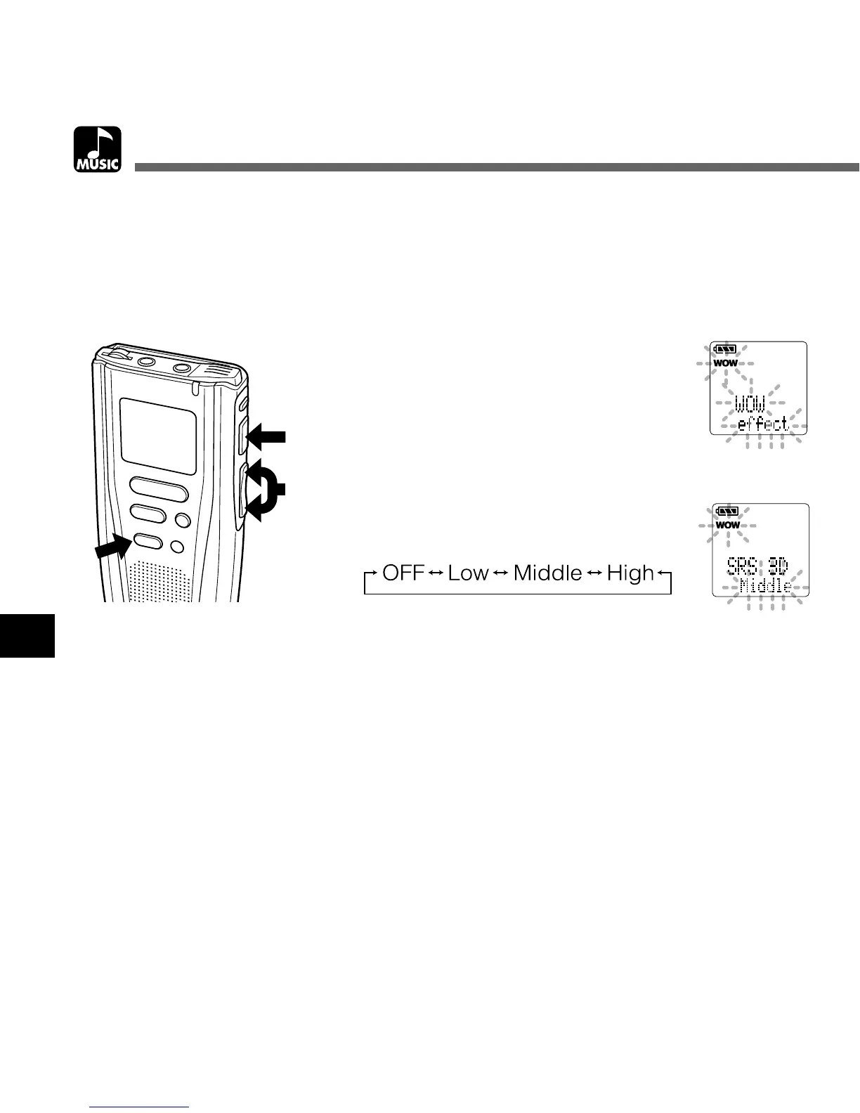 Surround effect (SRS 3D): Increases the sound-expansion effect and sound clarity.