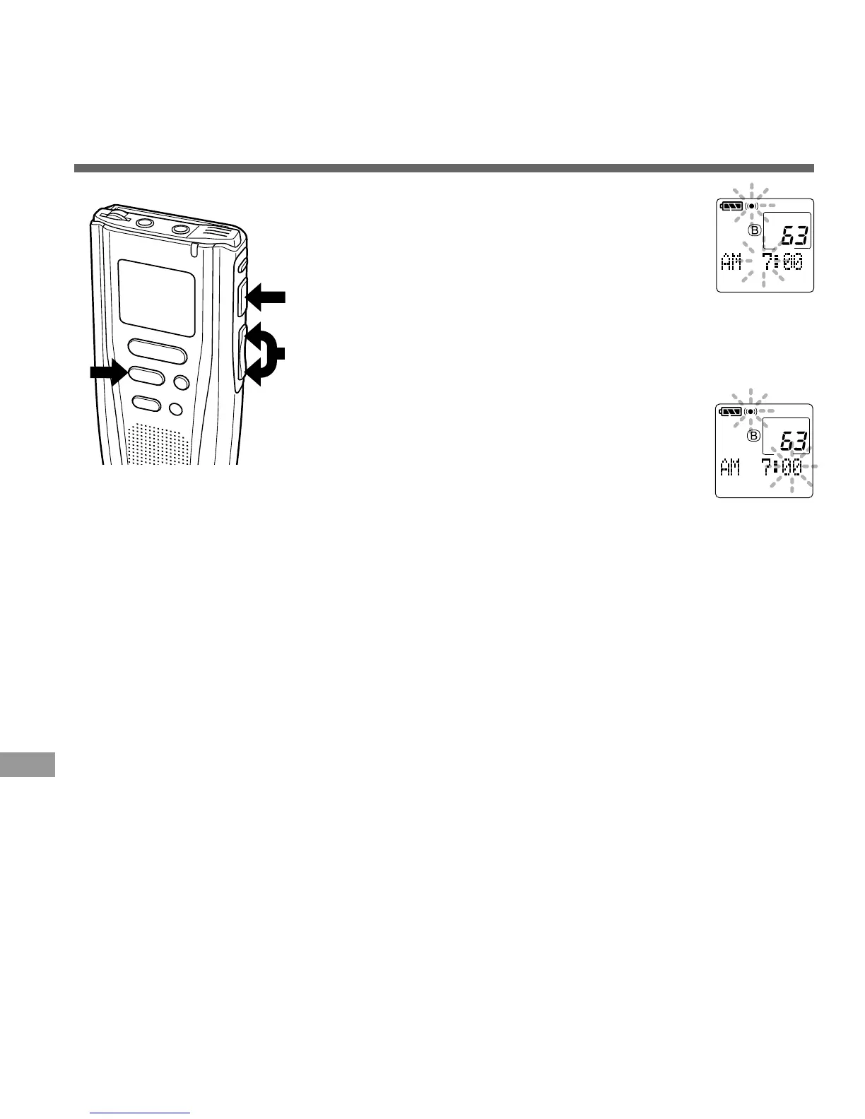 • The alarm will sound at the scheduled time even if the recorder is set to hold. The recorder begins to play the