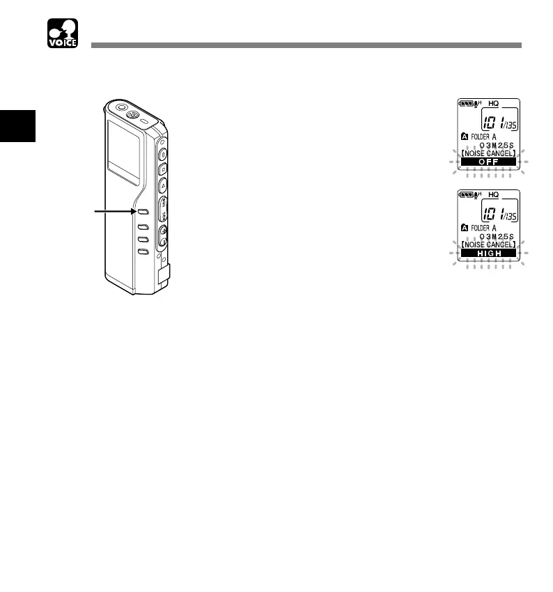 • If you set it to “LOW” or “HIGH”, the display flashes the Noise Cancel
