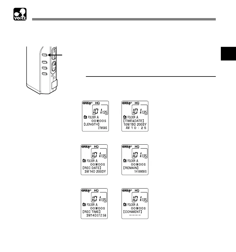 DISPLAY button. This help review and confirm different recorder settings and file information.