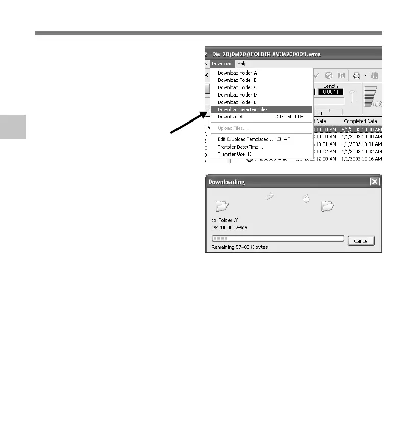 • The downloaded files will be stored in the download tray folder that corresponds to the folder in the recorder.