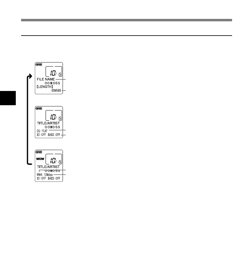 Title/artist name of the file and user equalizer (USER EQ)/WOW setup