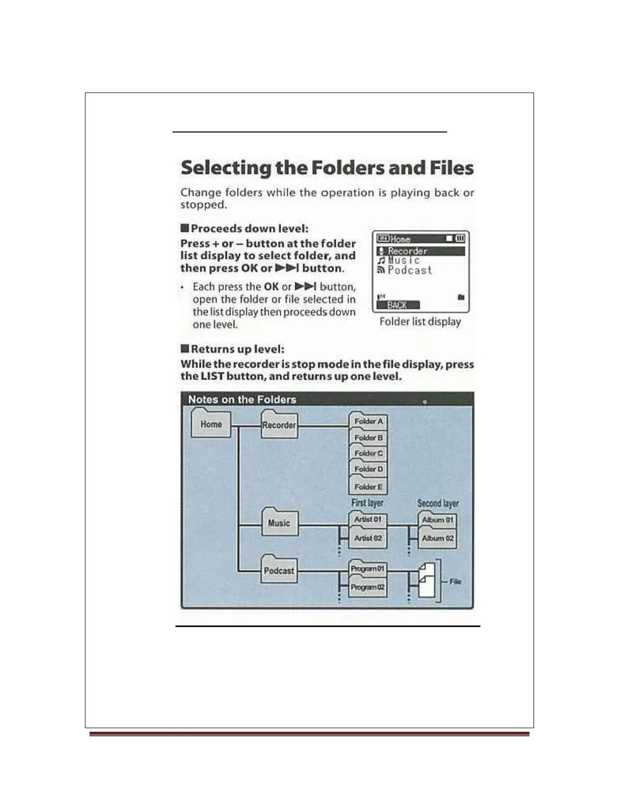 Olympus DM-450 - Folder Management; Saving Files to Folders