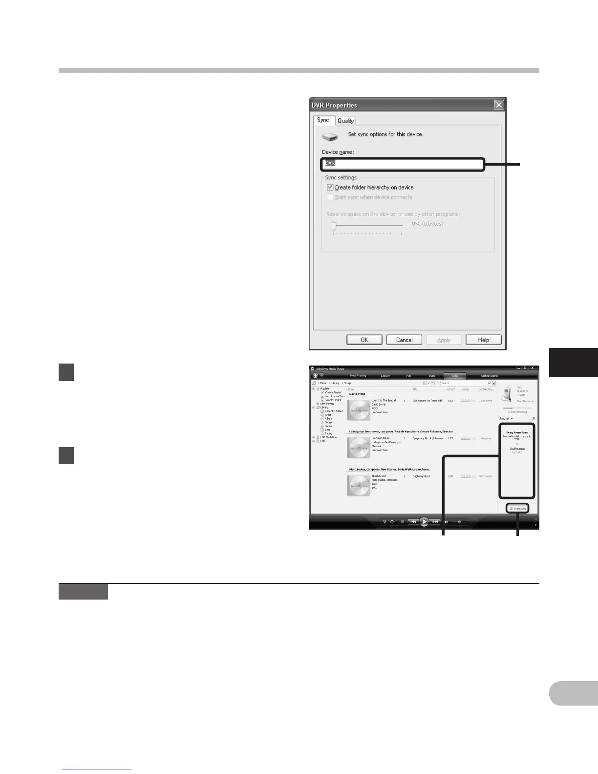 • To transfer the les by using Windows Media Player 9 or 10, check the Olympus website.