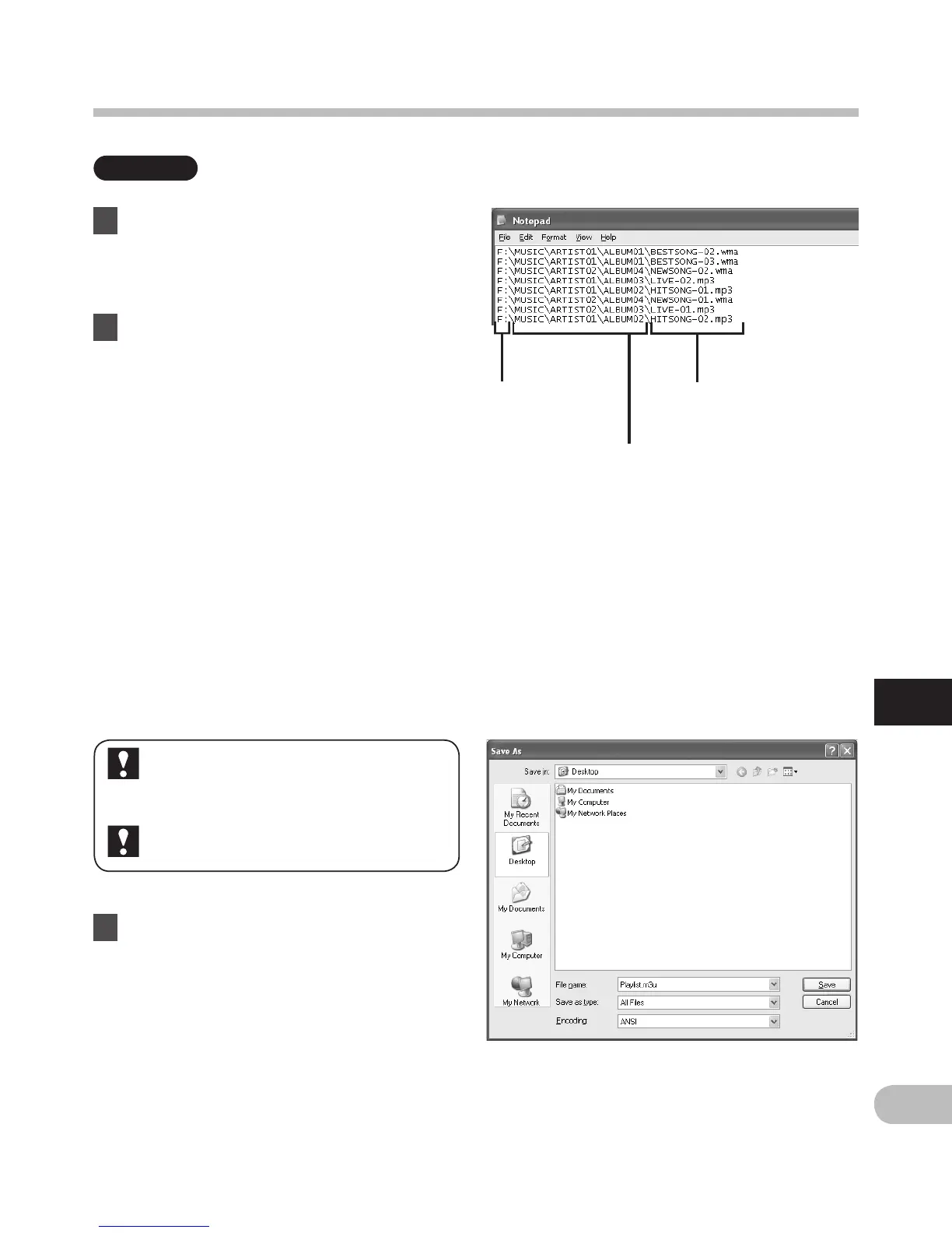 • The file names in the playlist are