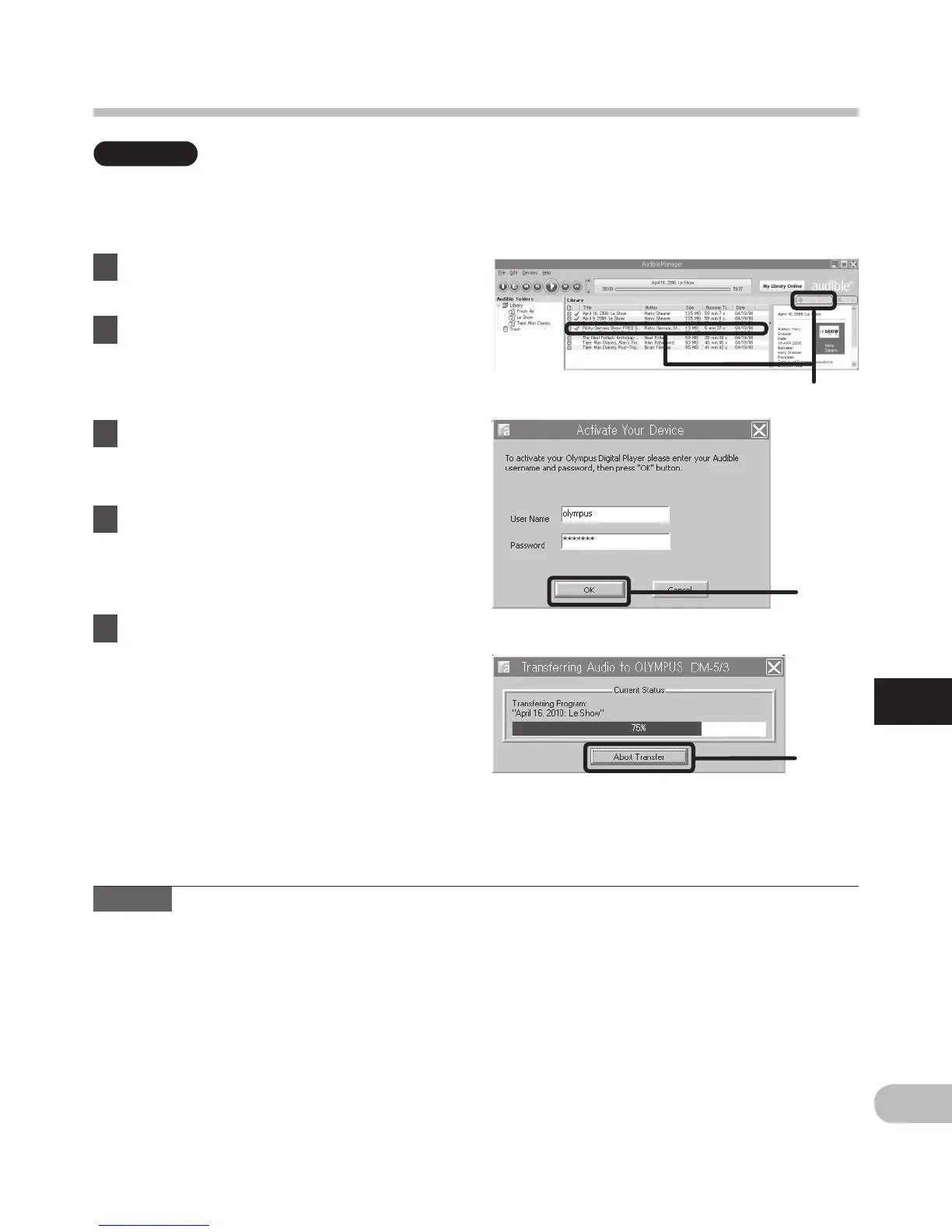 Audible content can be transferred into the [Audible] folder on the recorder by following the
