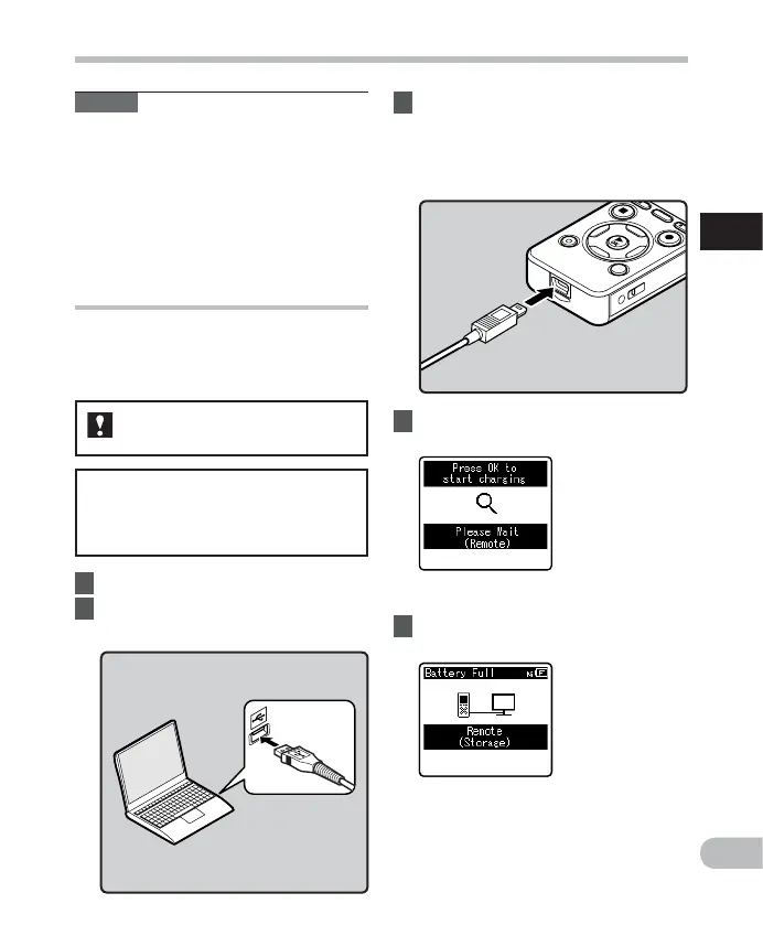 to a PC’s USB port. When charging, be sure