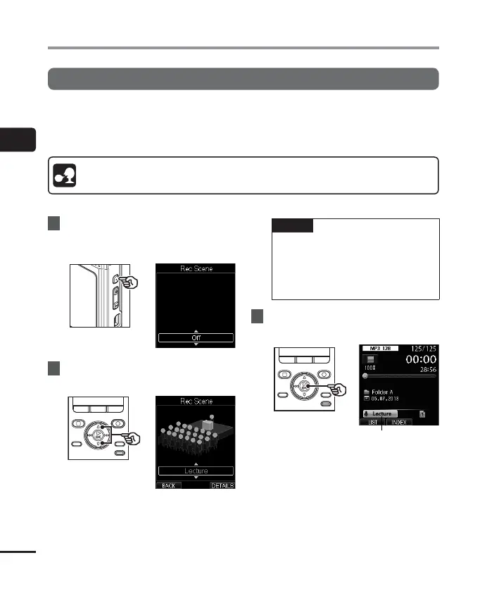 The voice recorder has preregistered templates of optimum settings tailored to various