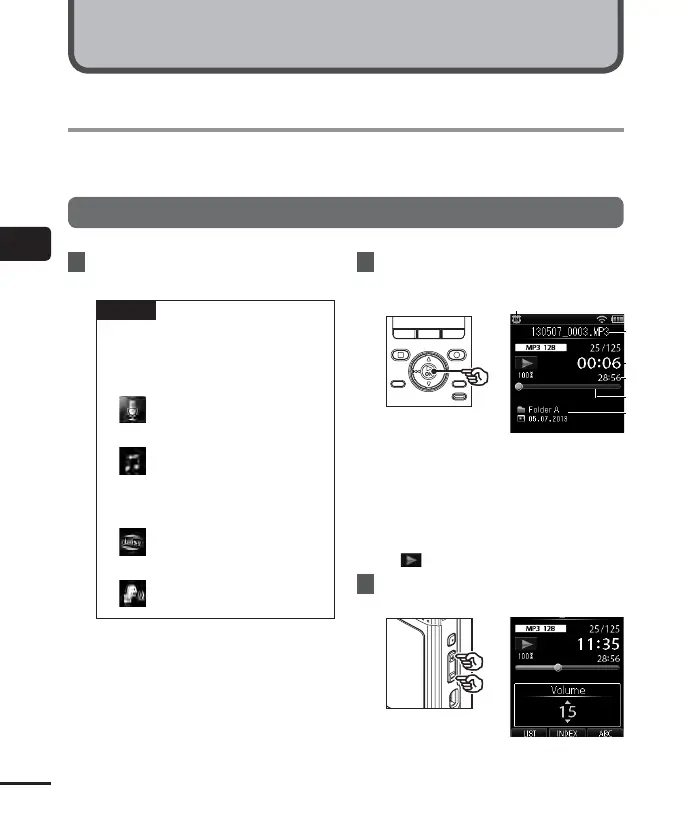 In addition to files recorded with the voice recorder, you can also play files in WAV, MP3, and