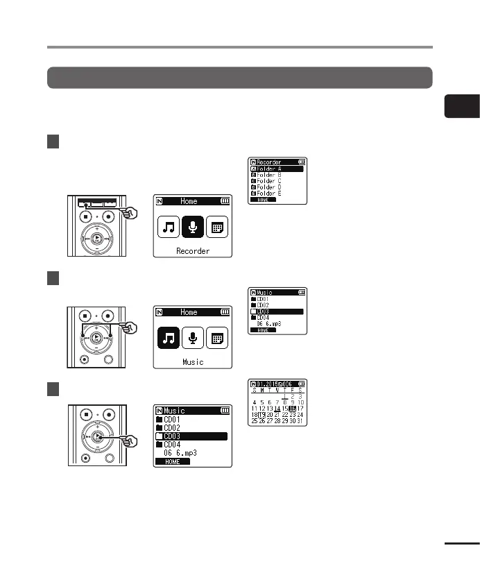 Choose the application you want by selecting one of the voice recorder’s modes.