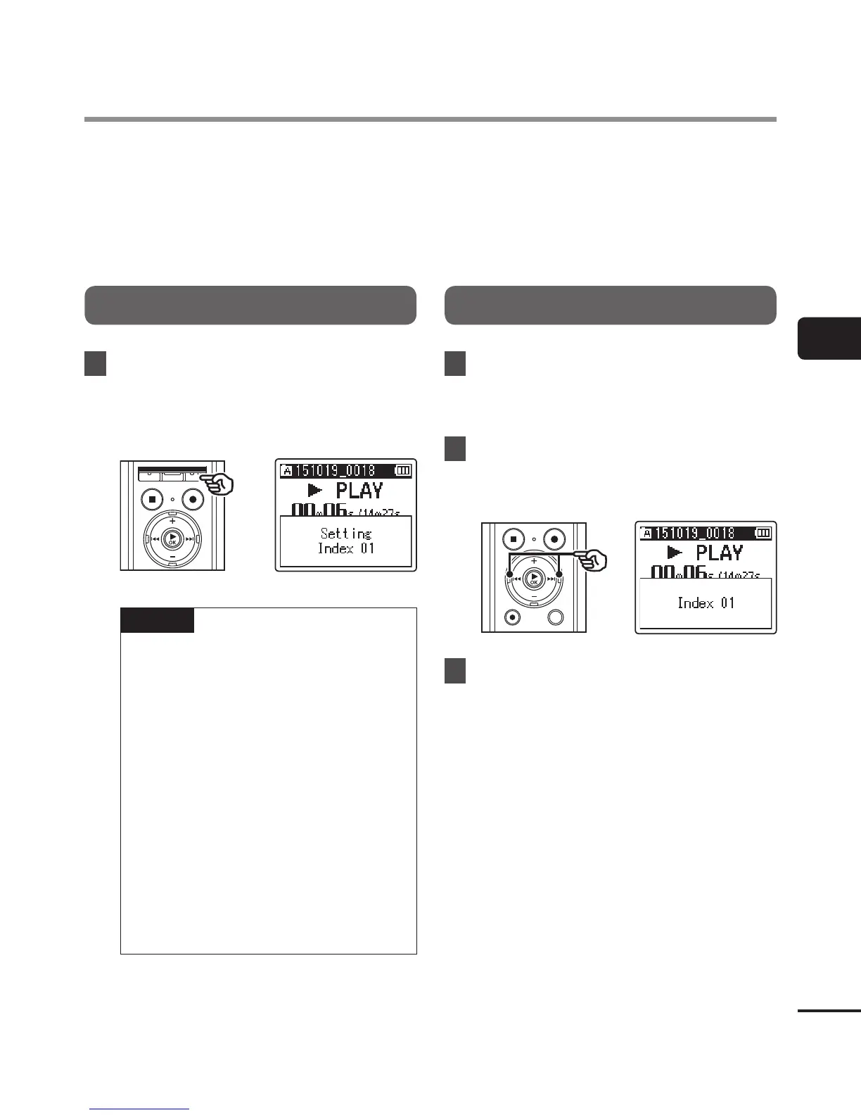 of a file. Index marks can only be written in files created with Olympus voice recorders. For files