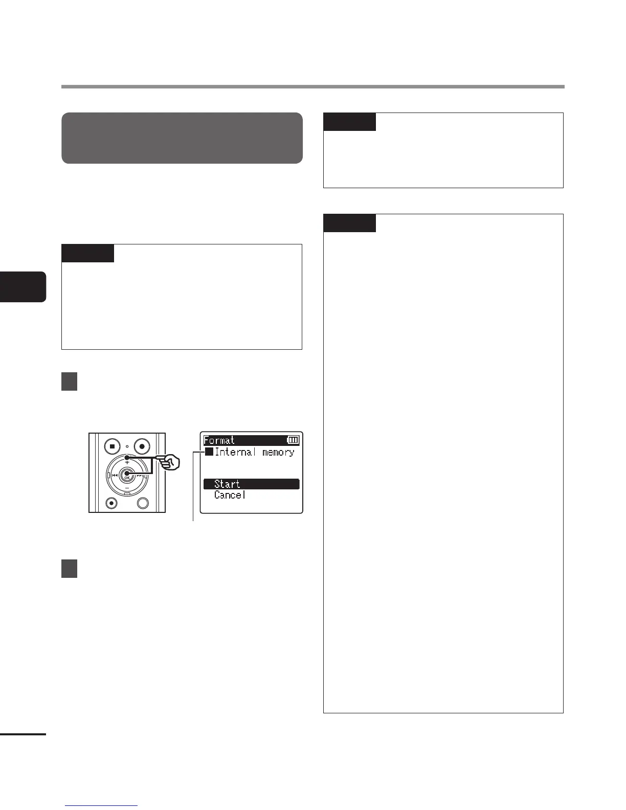 • Before formatting, charge or replace