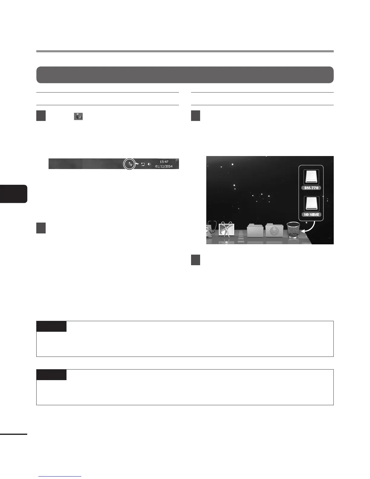 • To prevent the risk of data damage, never disconnect the voice recorder from the USB