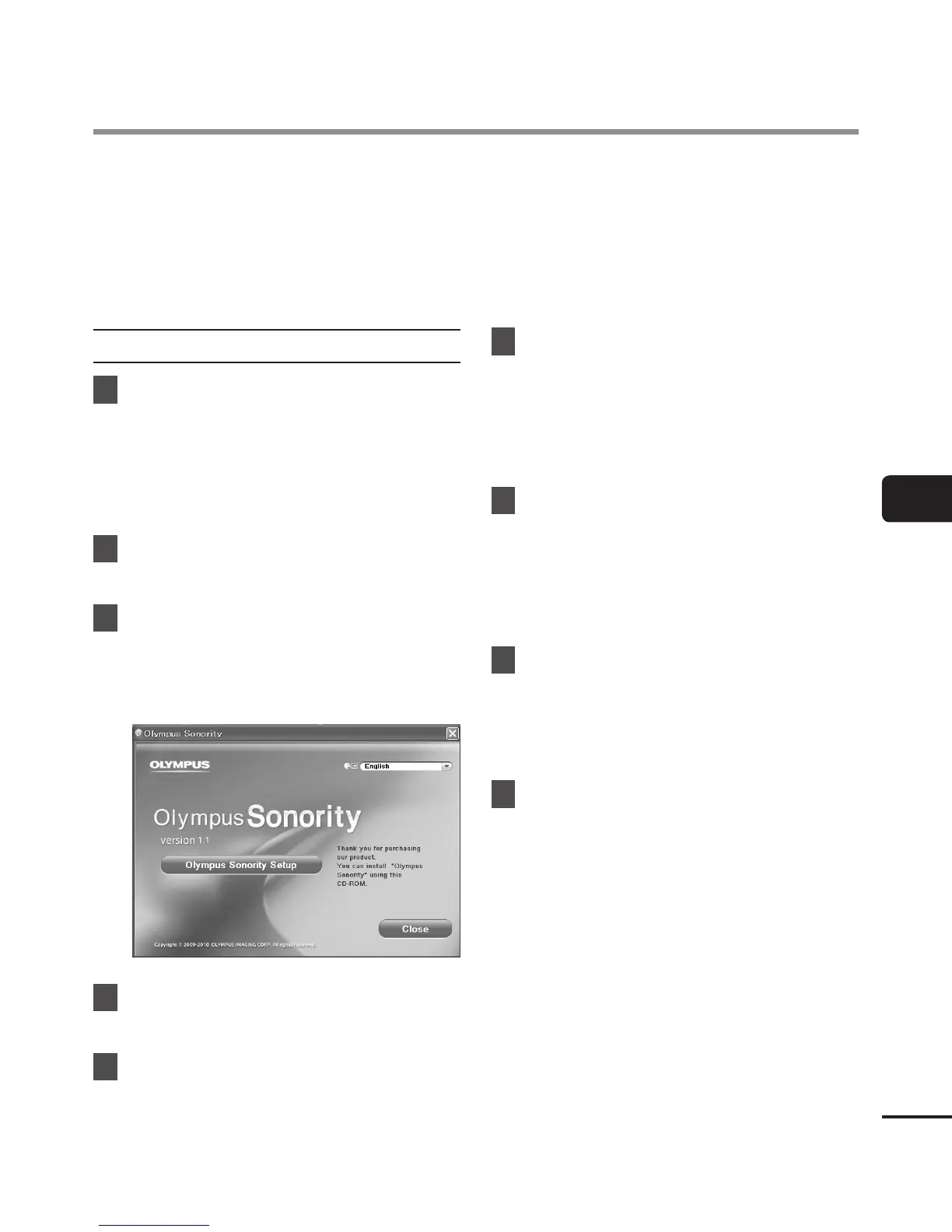Before you connect the recorder to your PC and use it, you must first install the “Olympus