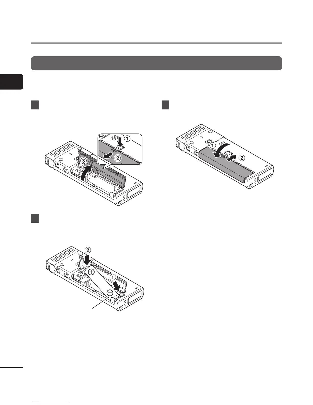 Before using the voice recorder, insert the battery in the battery compartment of the voice
