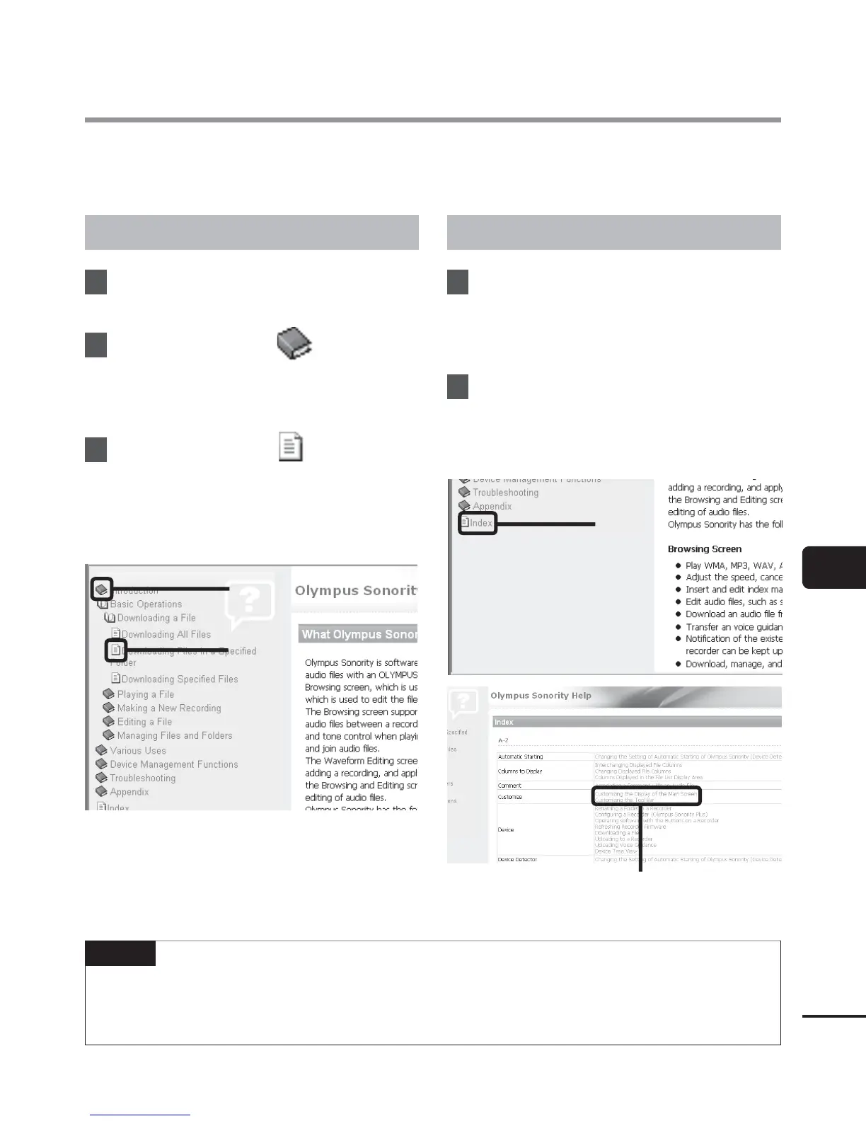 • With Olympus Sonority running, from the [Help] menu, select [Olympus Sonority Help].