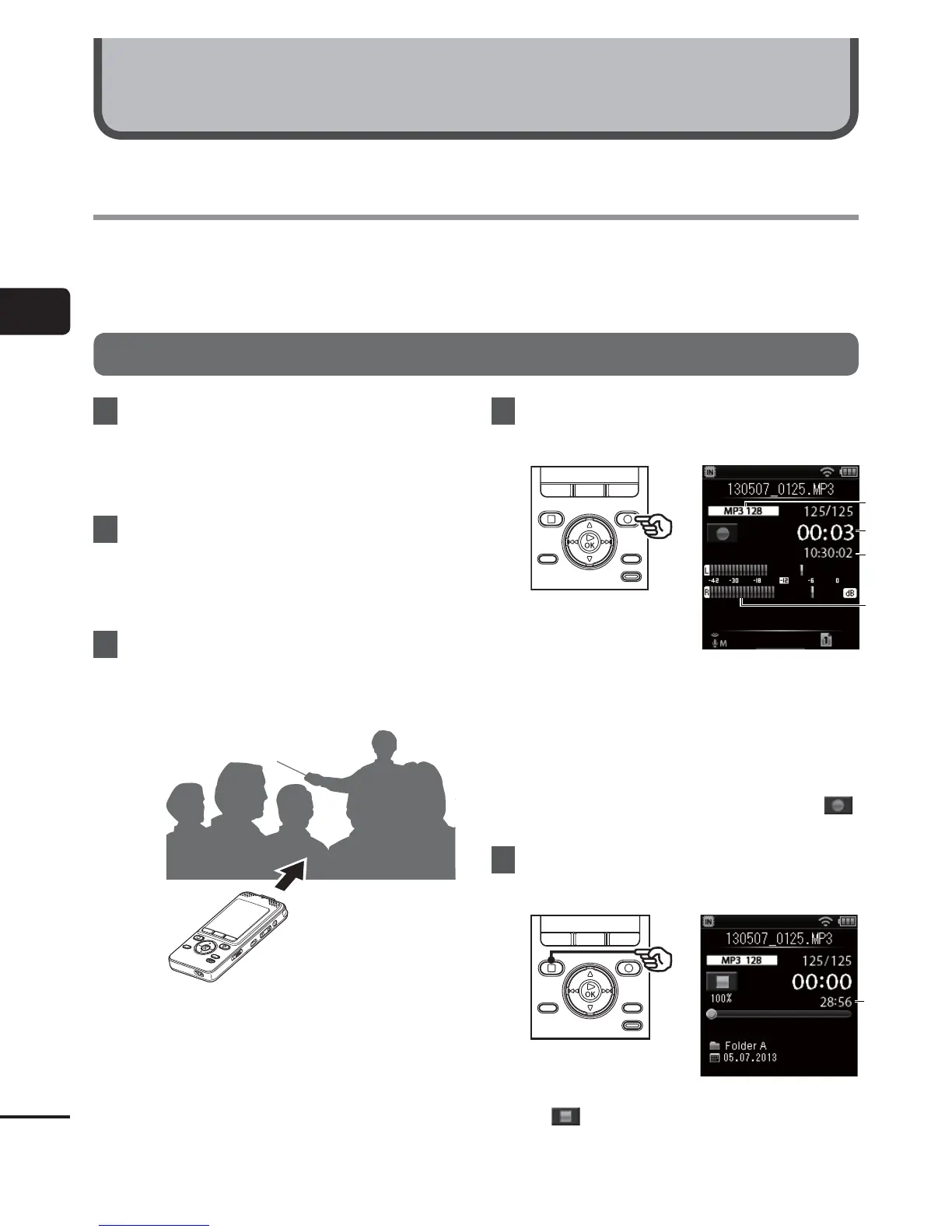 The voice recorder has five folders ([&] to [*]) in which recorded files can be saved. These