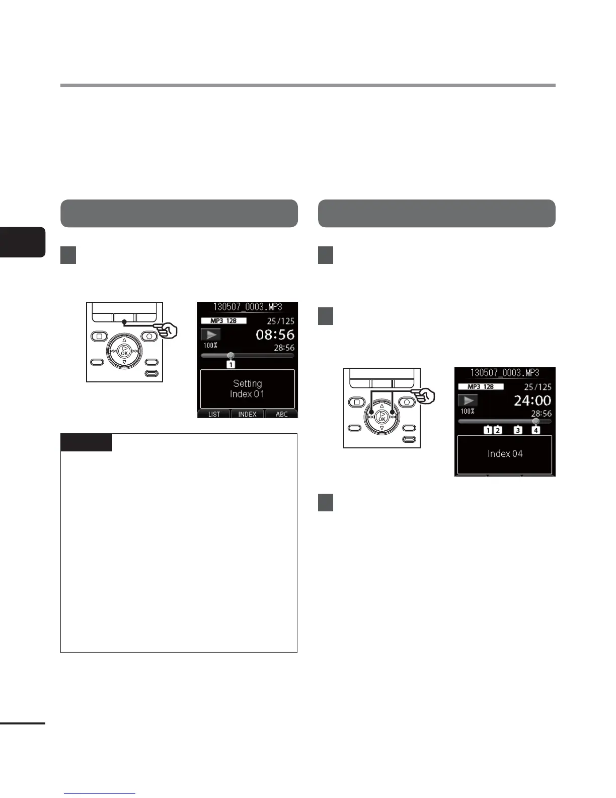 a file. Index marks are added to the files created using Olympus voice recorders and temp marks