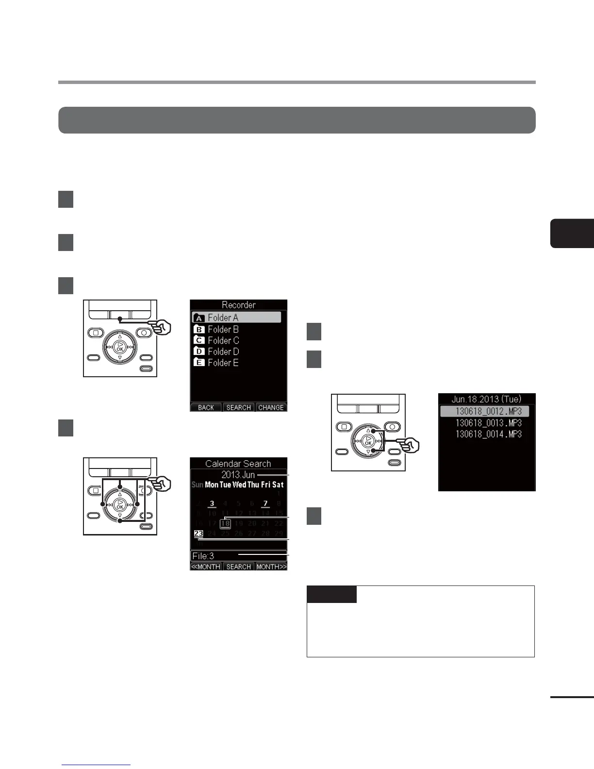folder a file has been saved, this feature lets you access it quickly by entering its recording date.