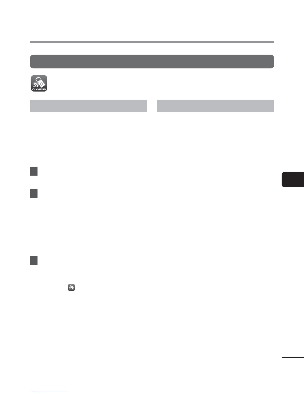 The OLYMPUS Audio Controller application for smartphones is required to use your