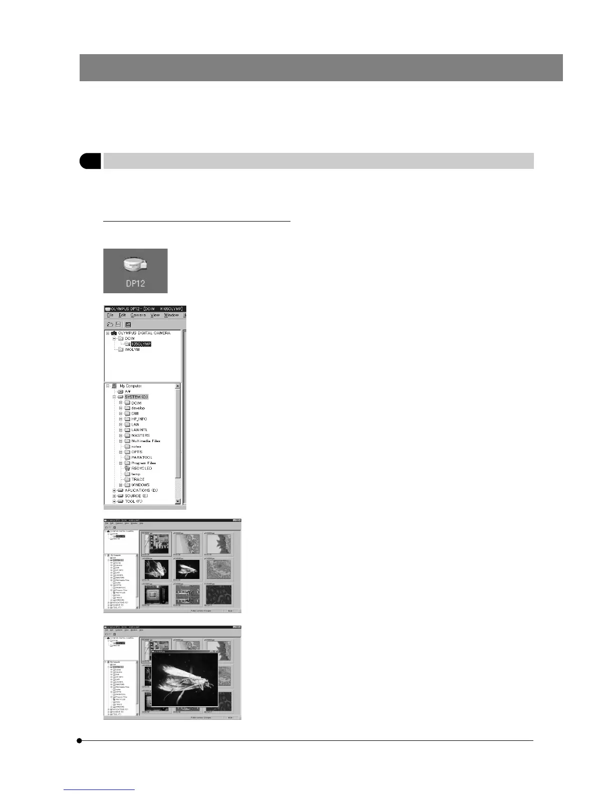}To view recorded pictures on a PC screen, use the software in the CD-ROM provided with the optional DP12-BSW PC