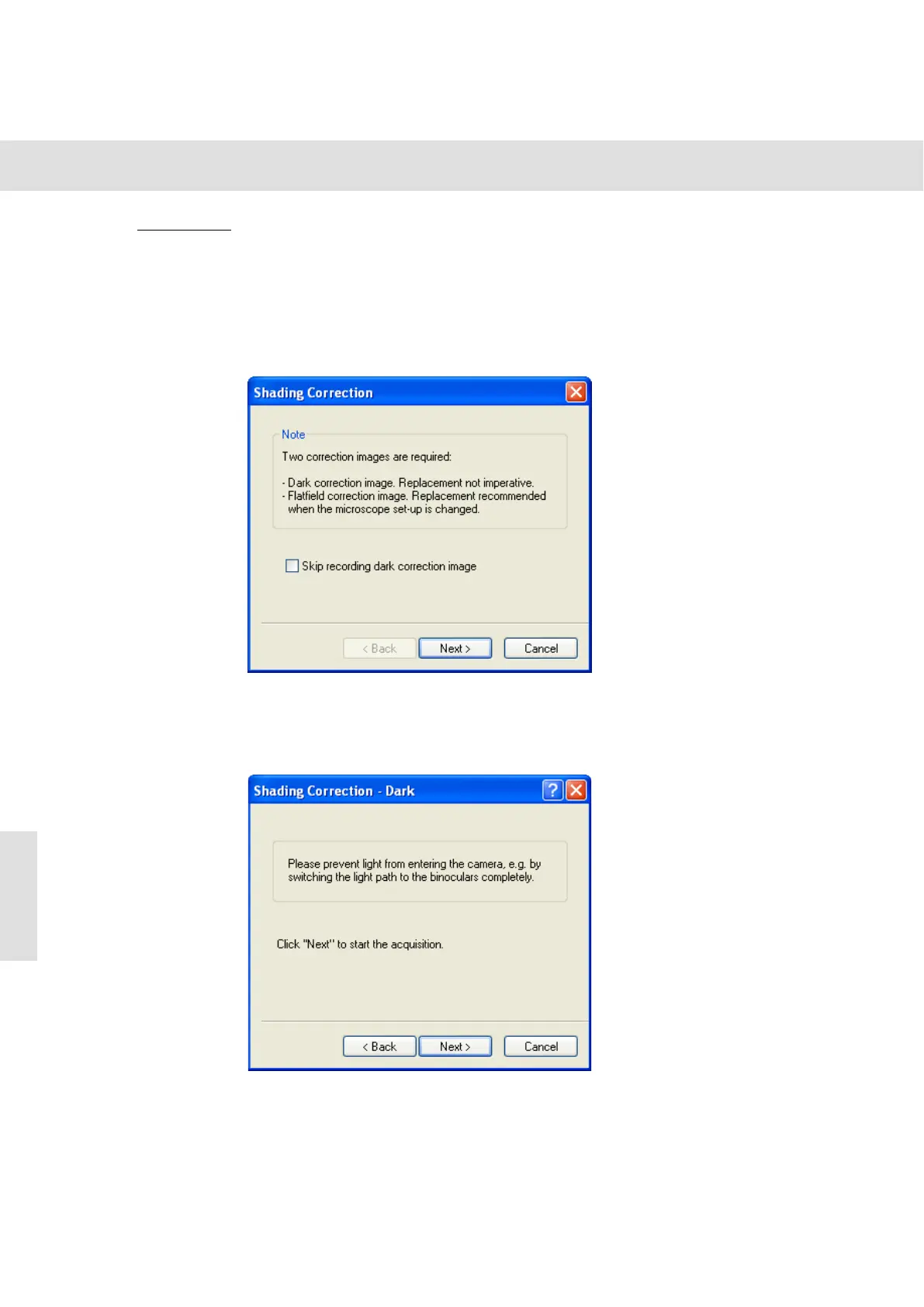 2) If you have already acquired a Dark correction image, the Skip recording dark