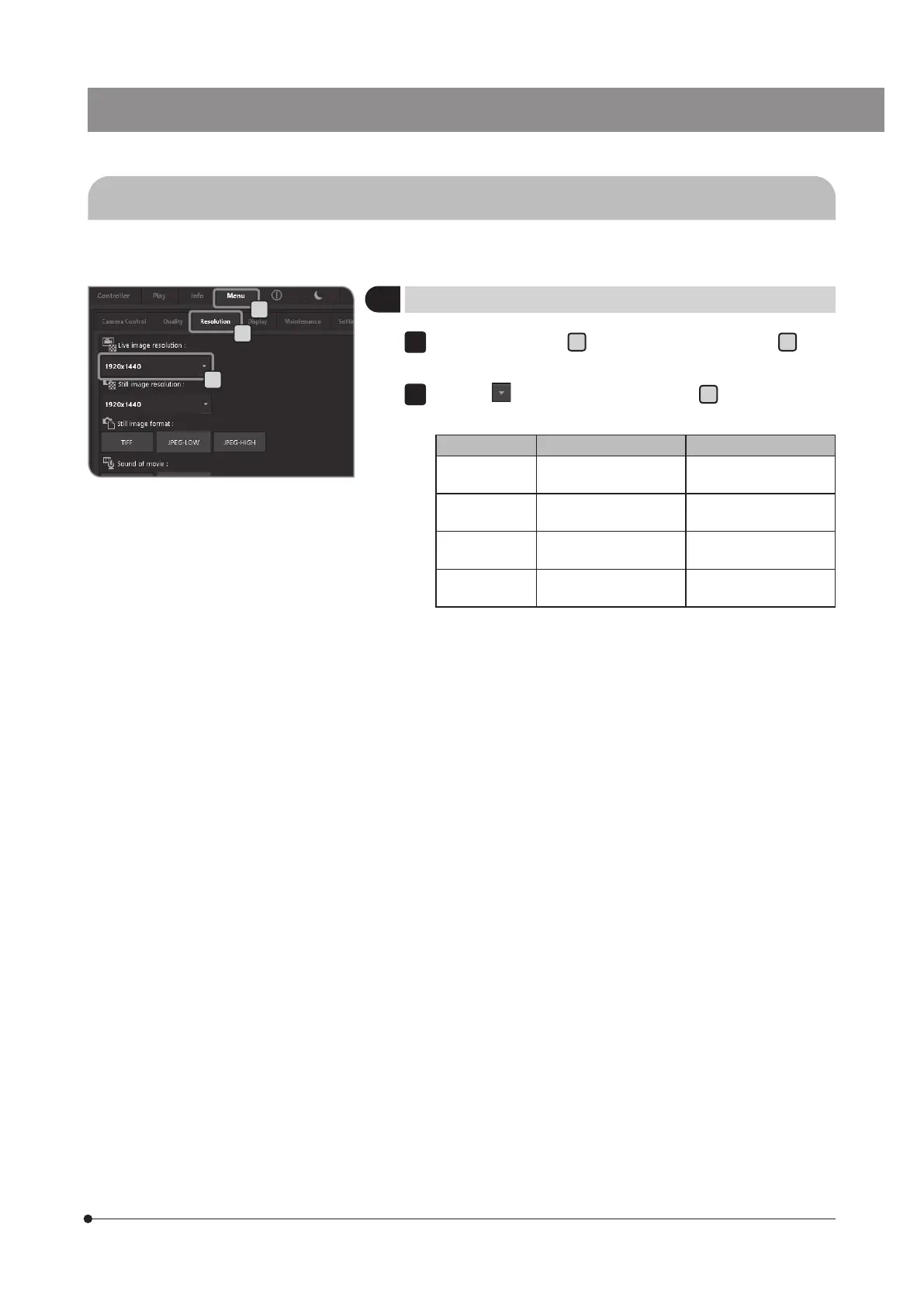 button of [Live image resolution]
