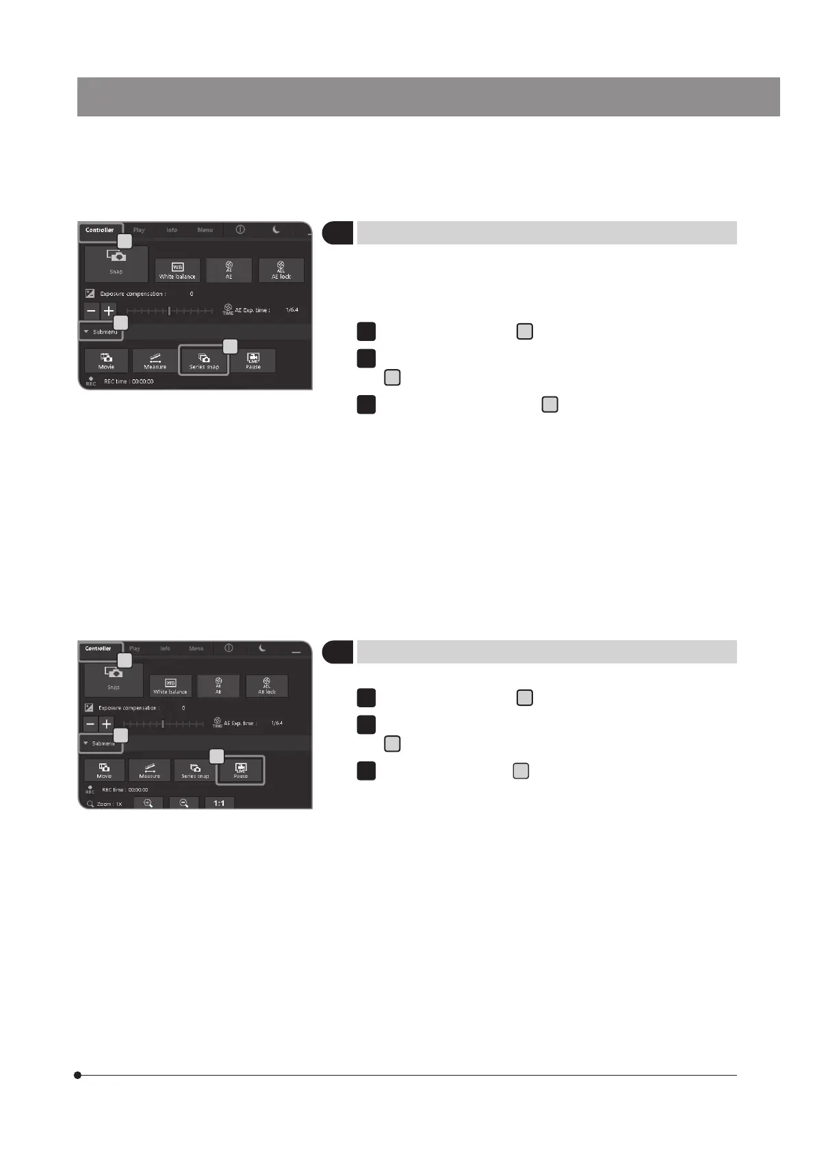 } Press the [Series snap] button again to stop the series snap.