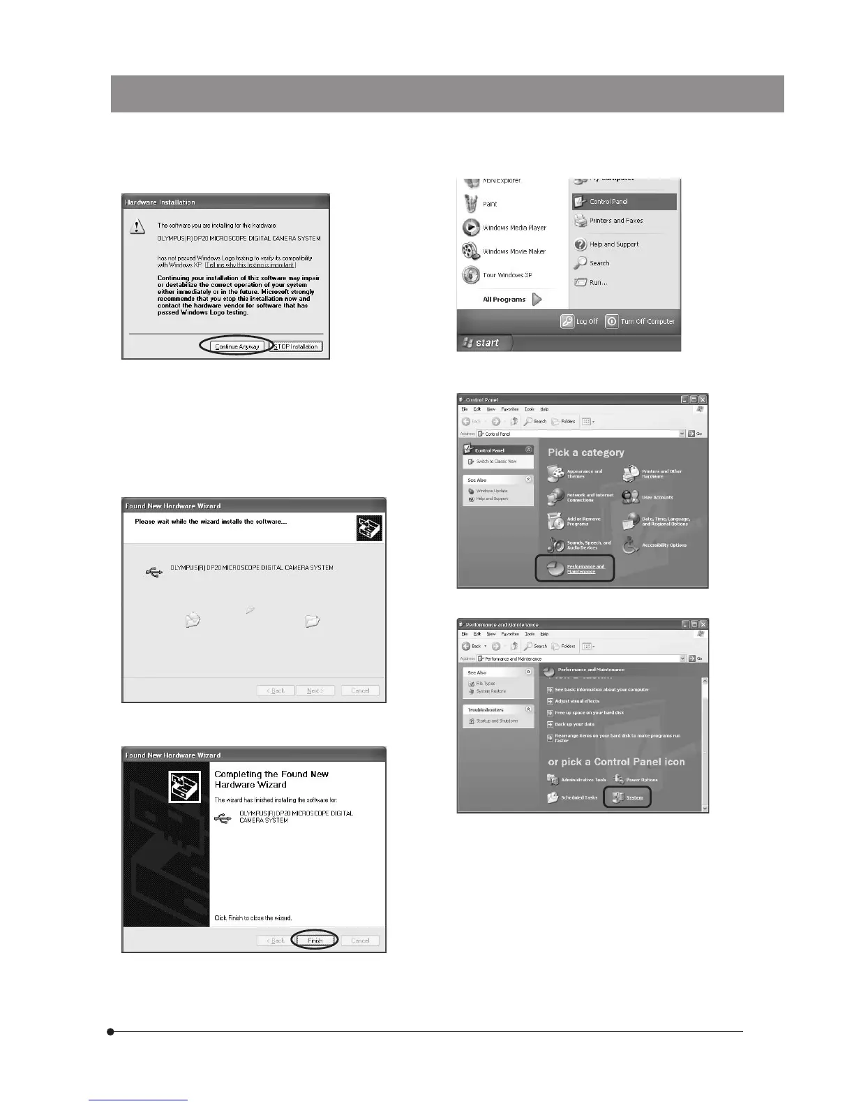 (Note) When Olympus software is recognized, the message