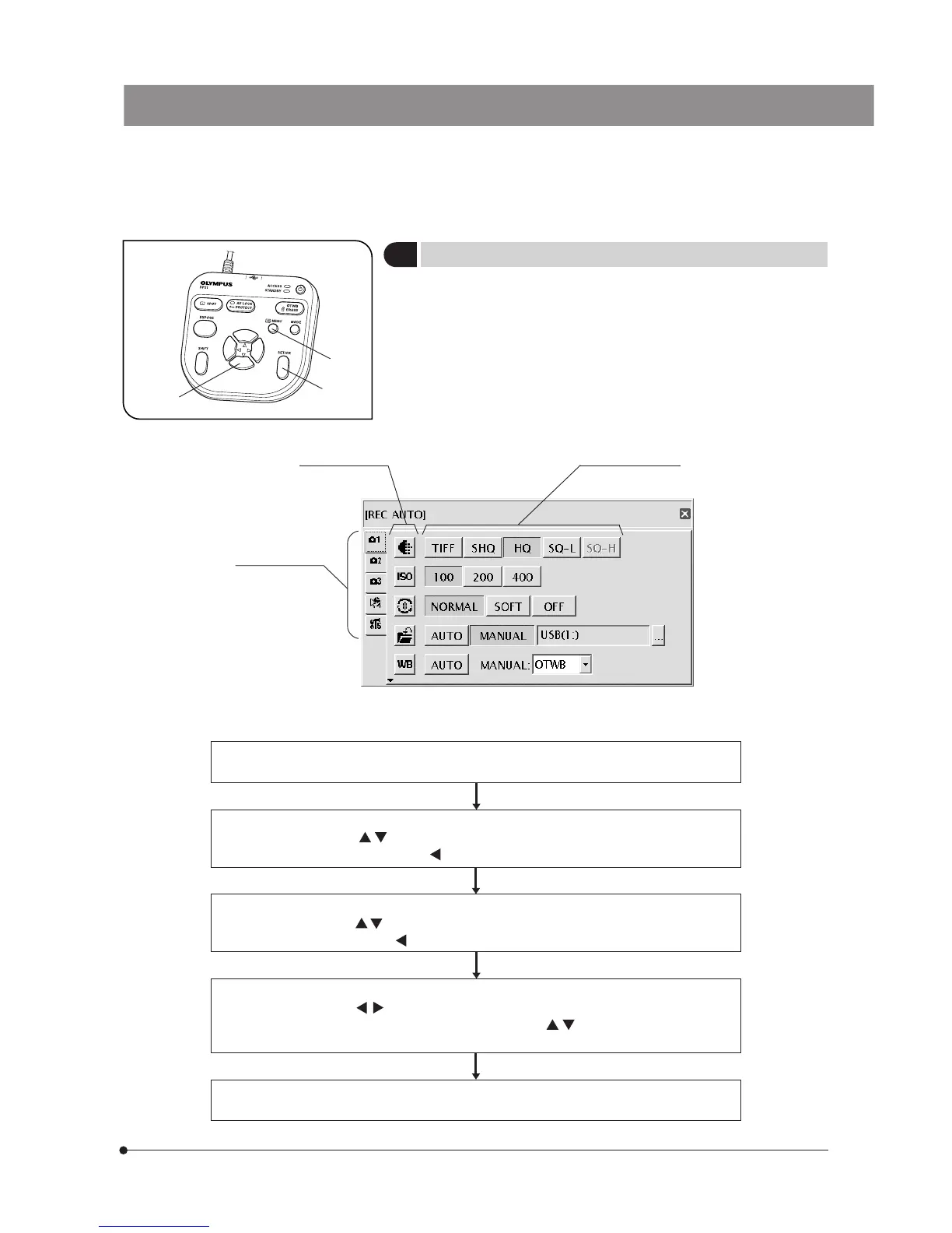 selection of a setting item icon. Press to return to the beginning of tab selection step.