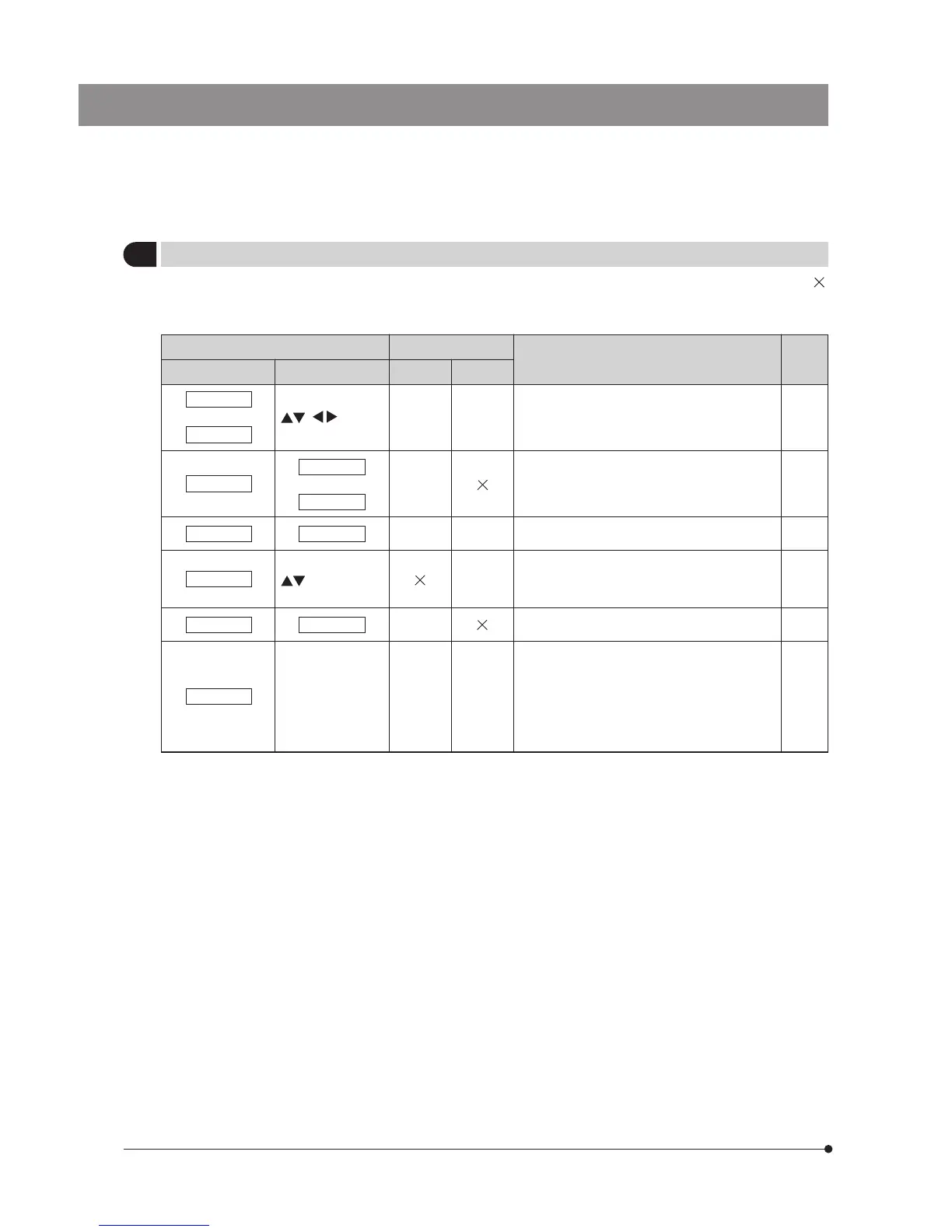Pressing two buttons makes it possible to perform a quick setting as shown in the following table (¦: Possible / :