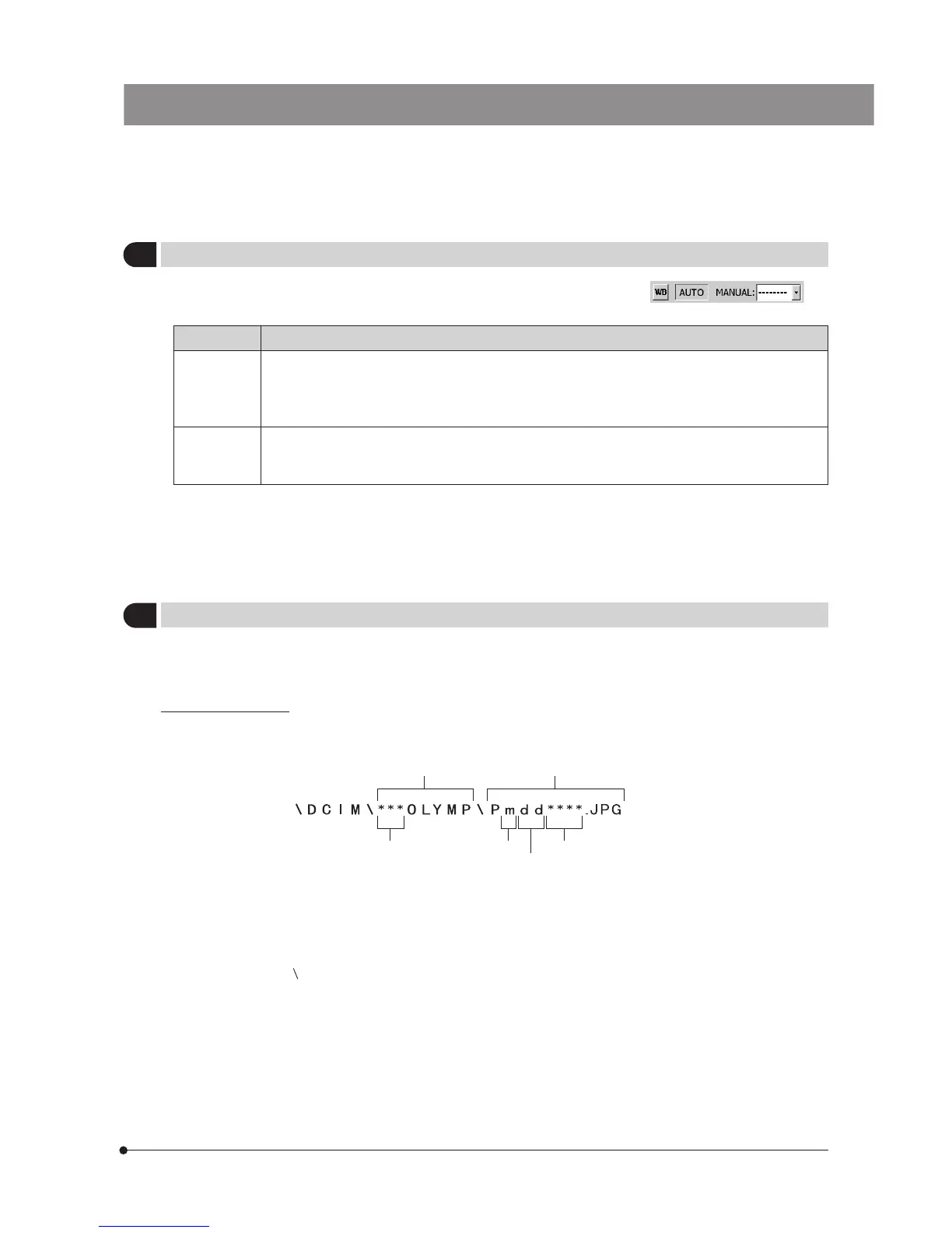 When the save folder setting is “MANUAL” and the folder is specified manually, the folder and file are named as follows.