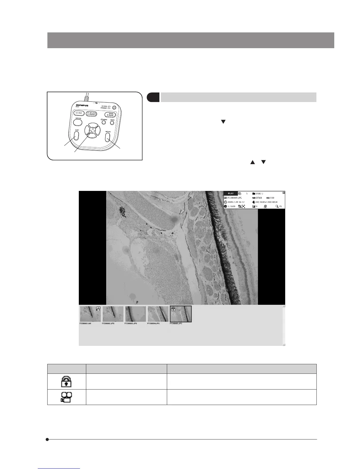2. The cursor can be moved across the thumbnails using the cursor but-
