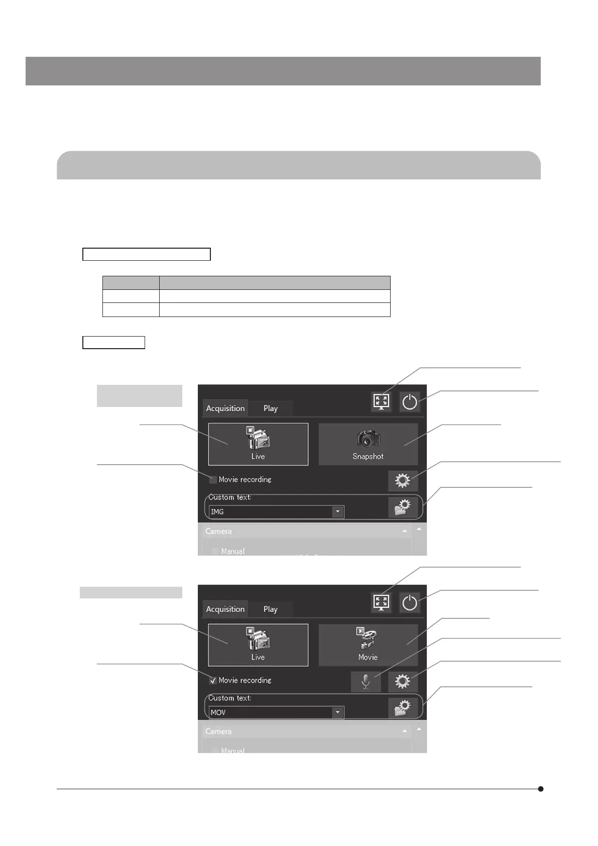*Use the [Movie recording] check box for switching between acquiring the still image and recording