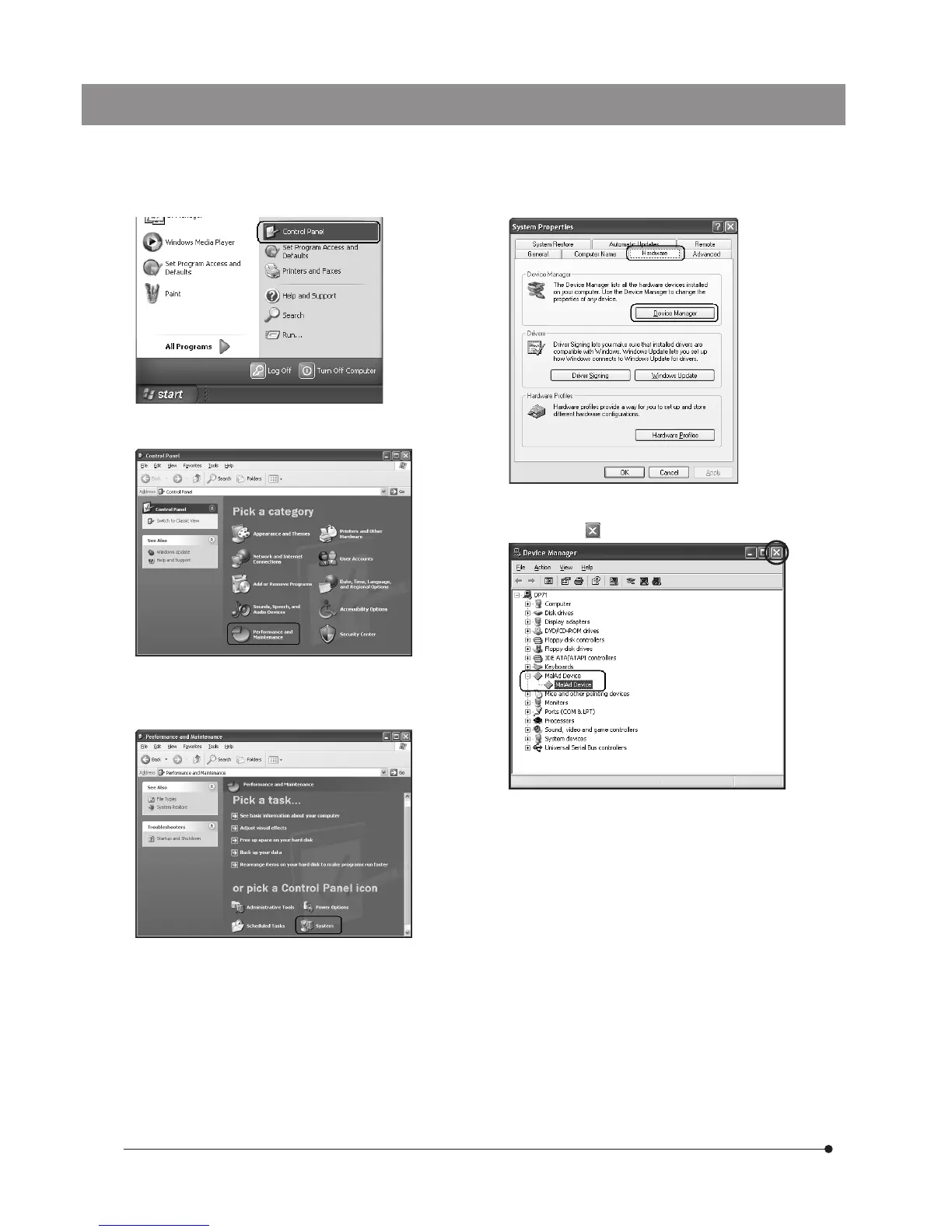 12. Click on the <Start> button. When the [Start] menu is displayed,