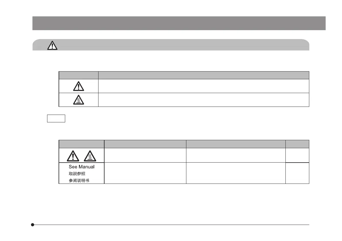 Indicates that the surface becomes hot, and should not be touched with bare hands. It may