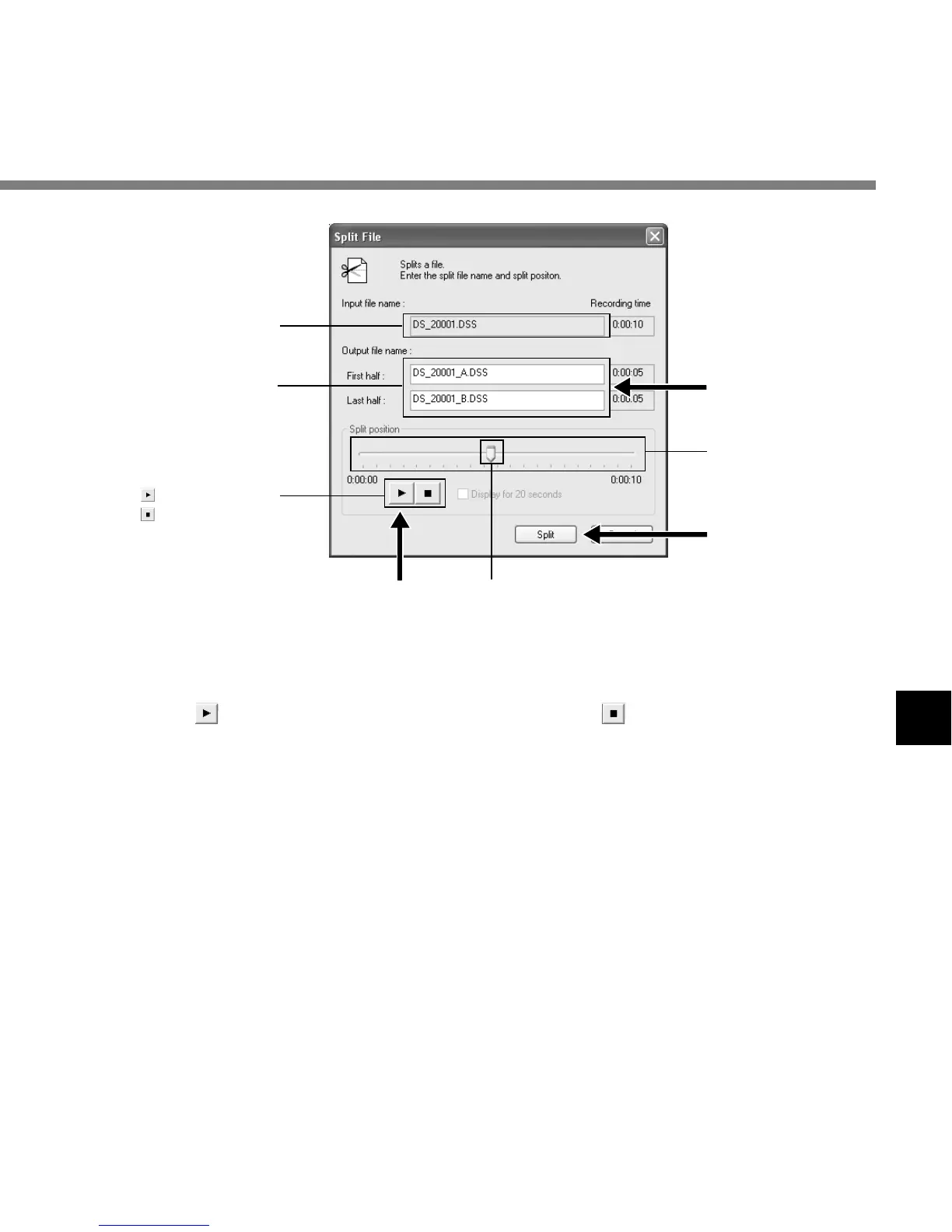 The splitting of the file will complete, and the file name designated in procedure 5 will be