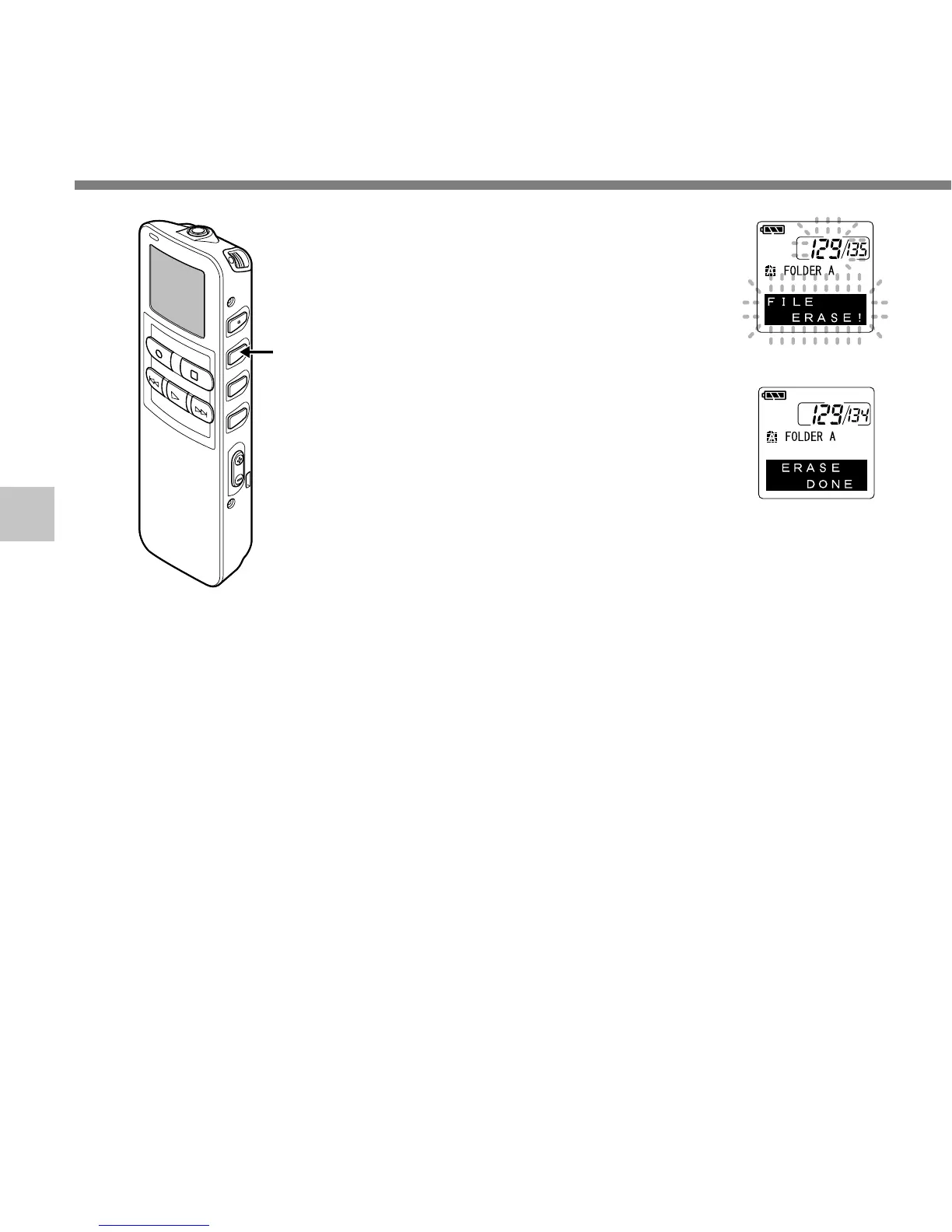 • Completion of erasing may take 10 seconds. Never do anything during this period because data may be
