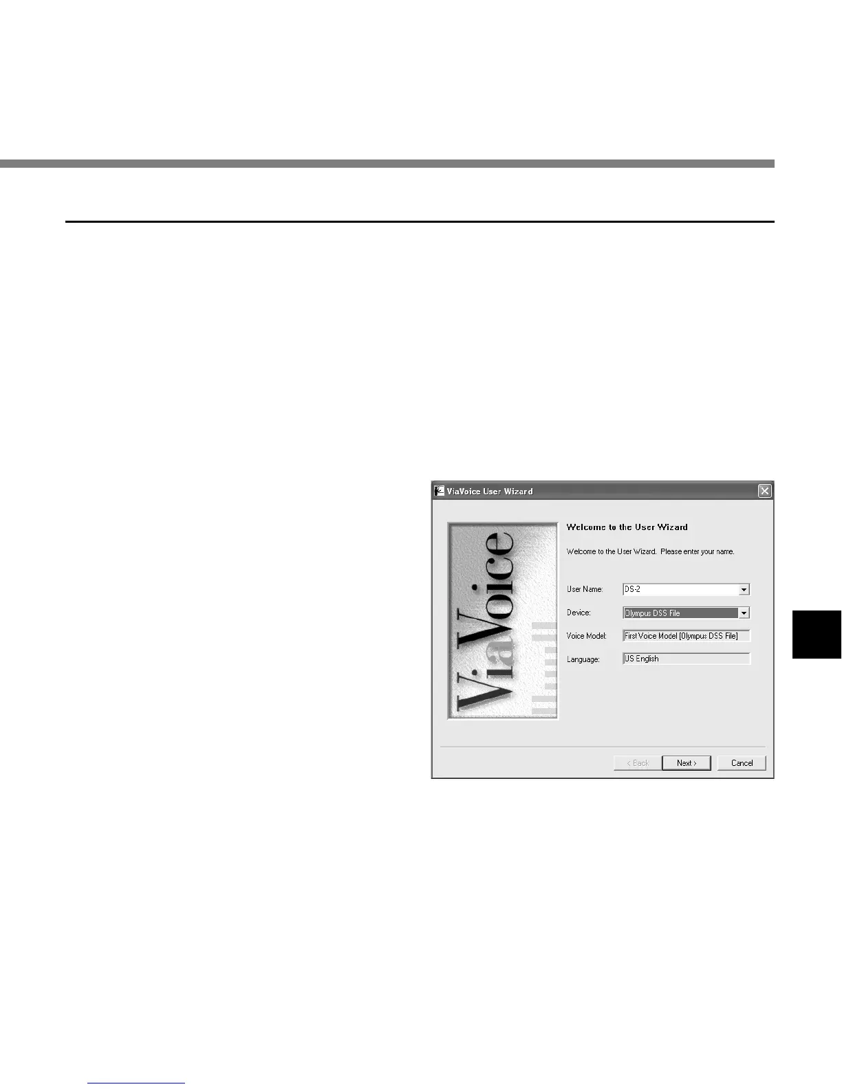 The ViaVoice User Wizard window