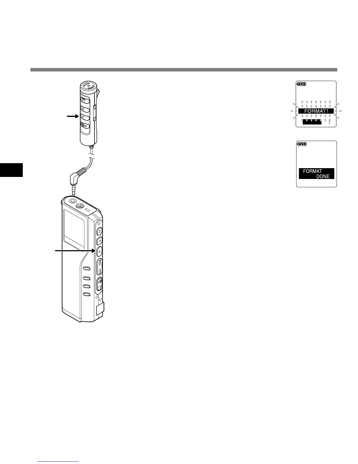 • Wenn der Recorder formatiert ist, werden alle gespeicherten Daten,