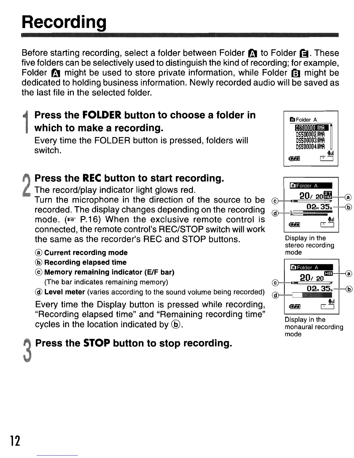 recorded. The display changes depending on the recording