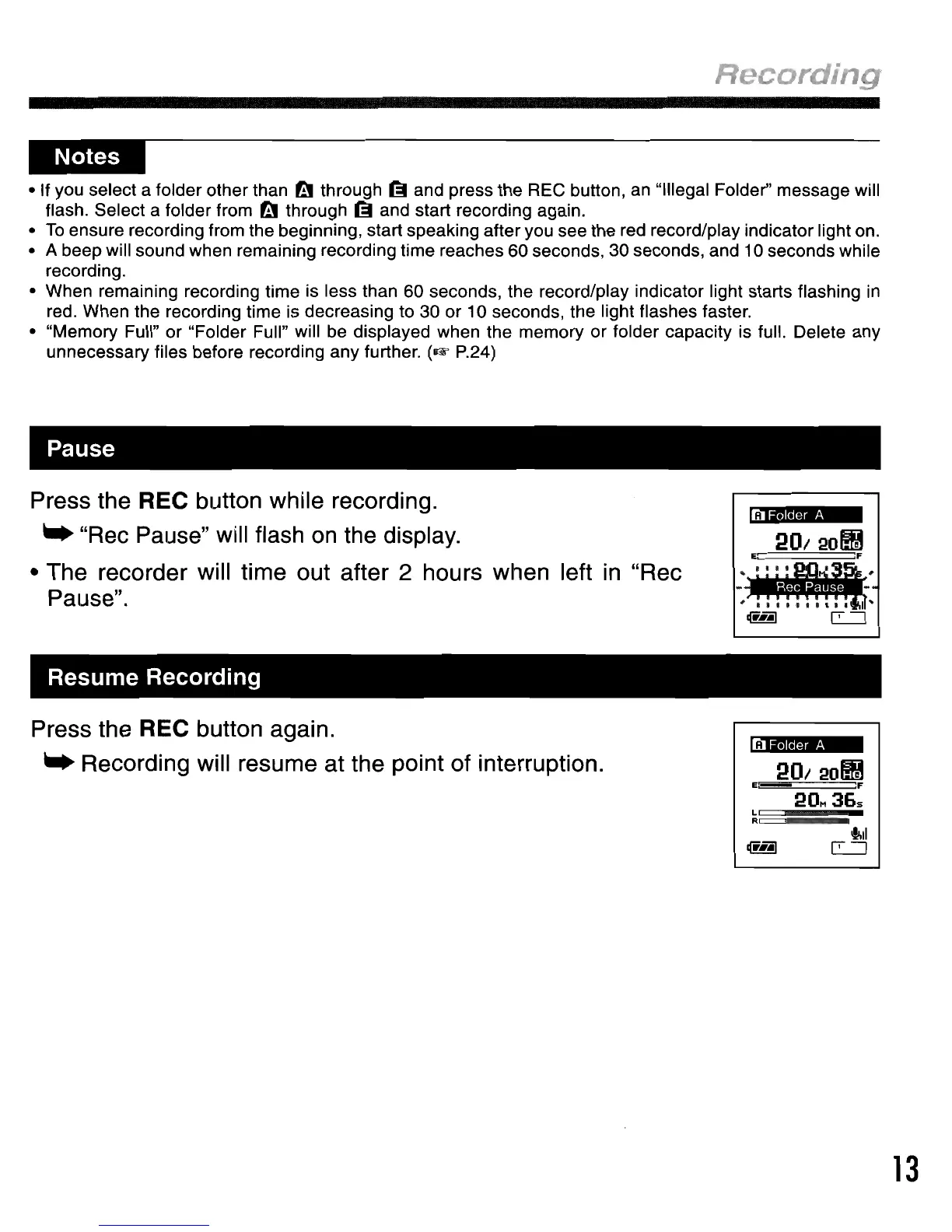 "Rec Pause" will flash