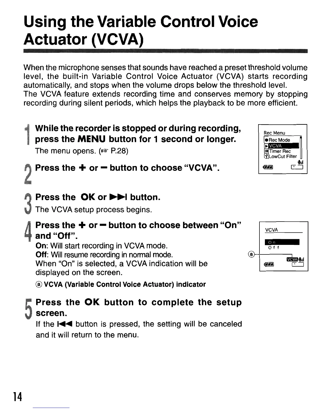 level, the built-in Variable Control Voice Actuator (VCVA) starts recording