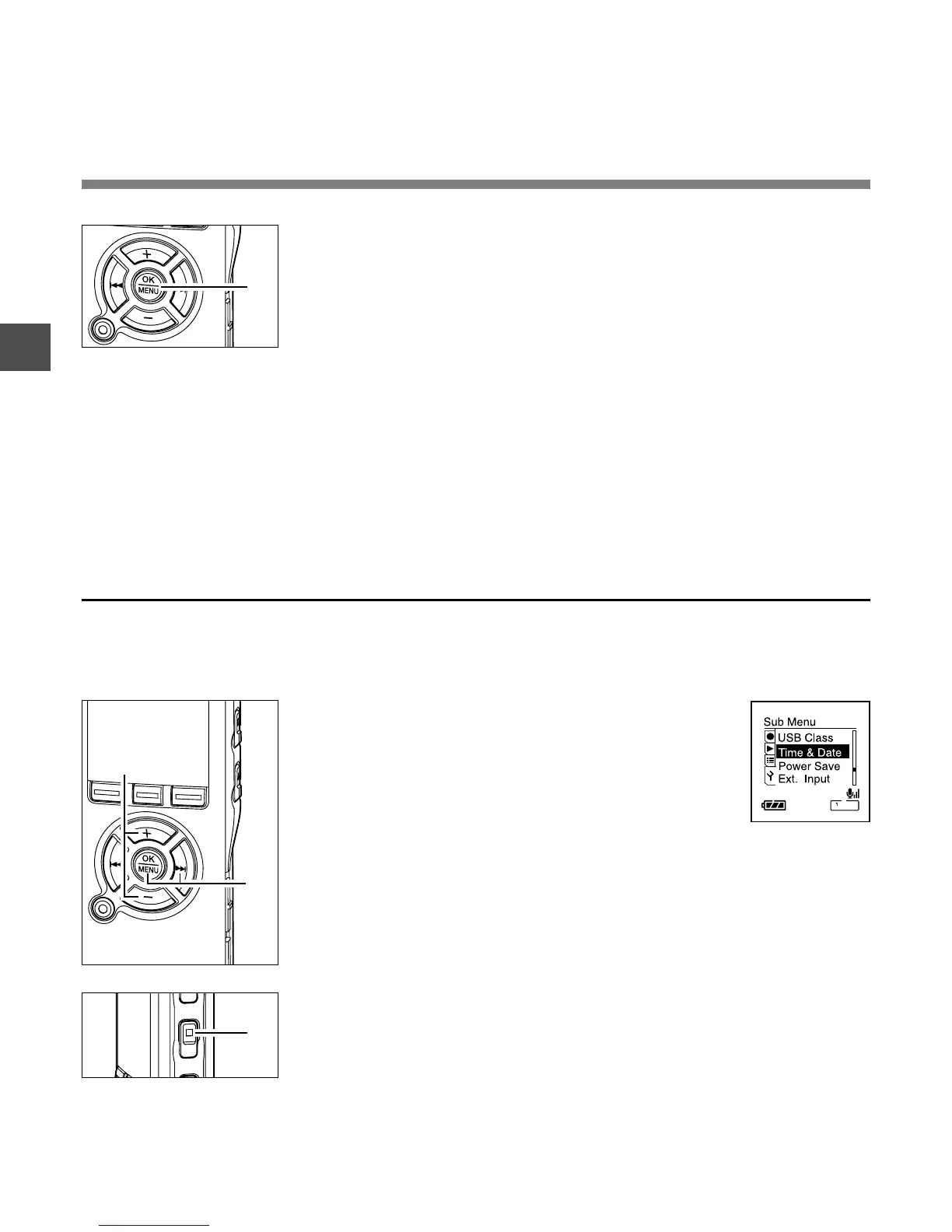Press the STOP button while the recorder has stopped recording to check “Time & Date” and