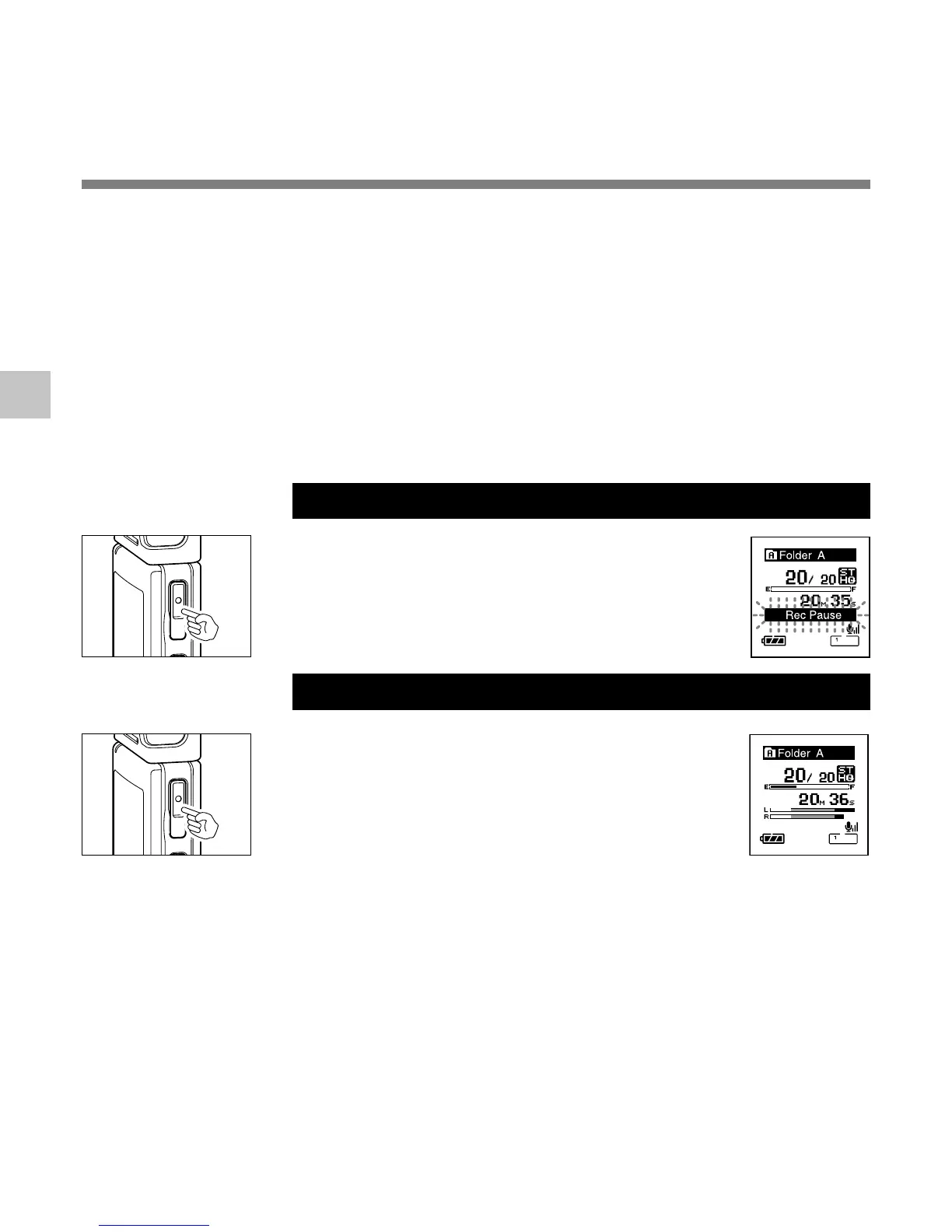 “Rec Pause” will flash on the display.