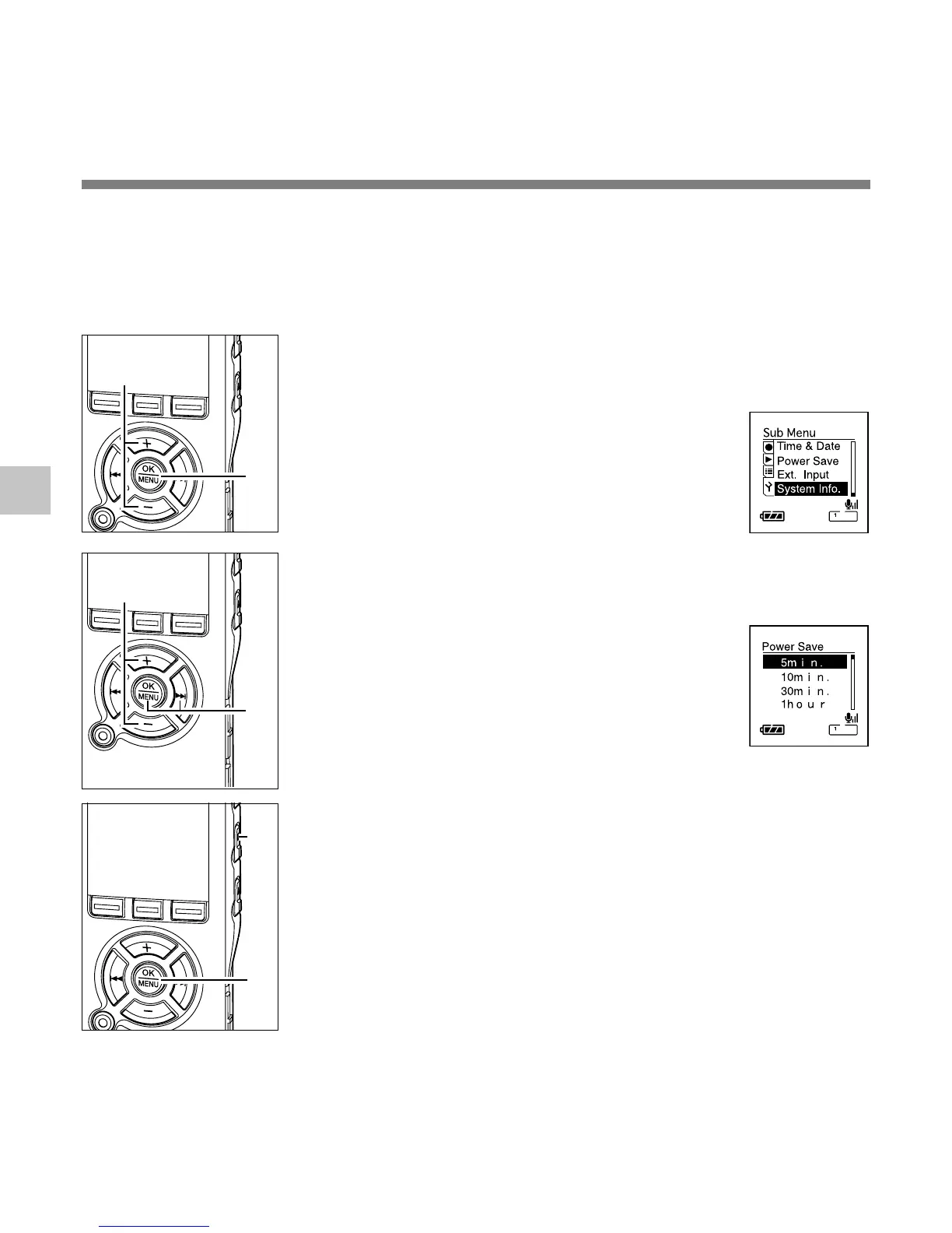 goes into power save mode. You can set the time to enter power save from among “5 min”,