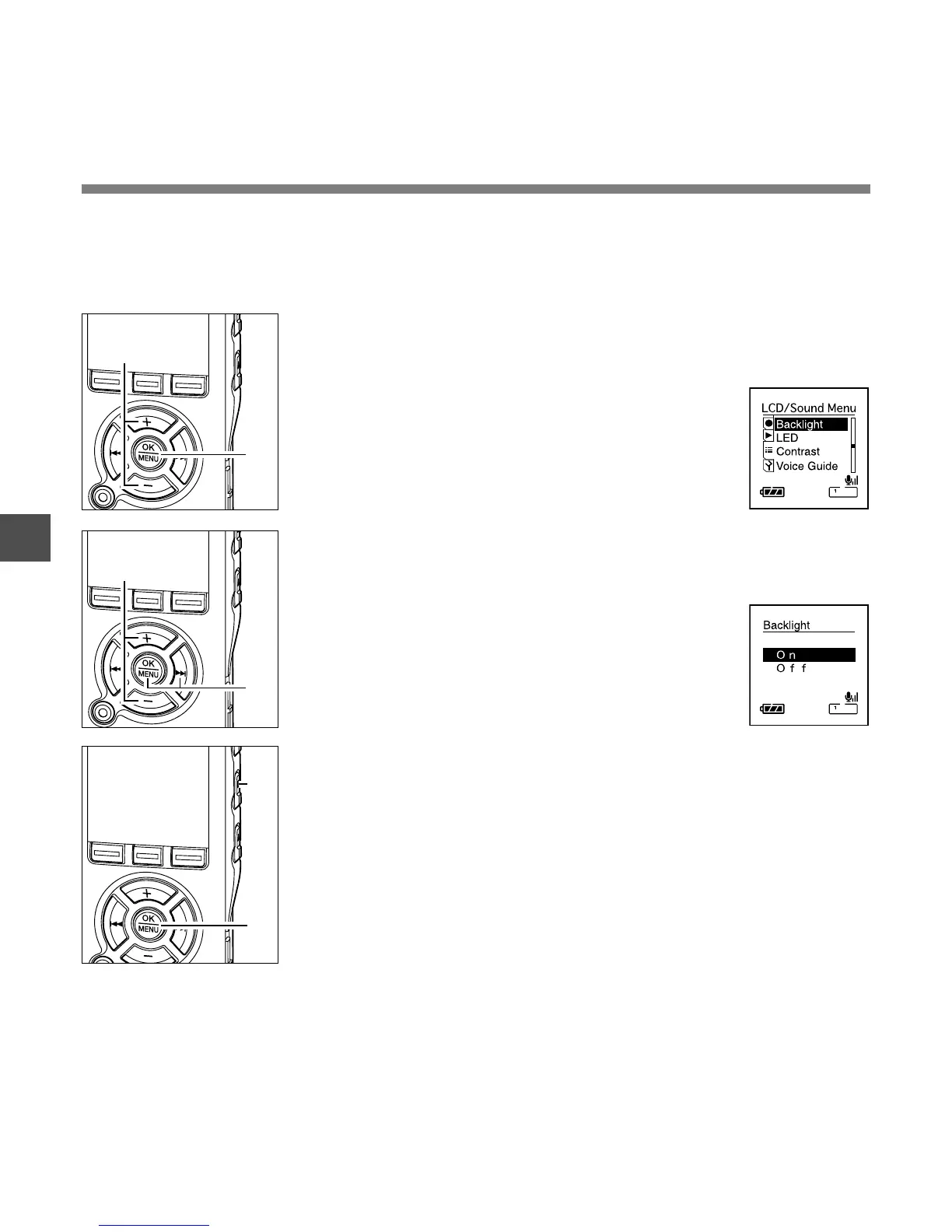 The recorder display backlight is On by default. The display will remain lit for about 10 seconds