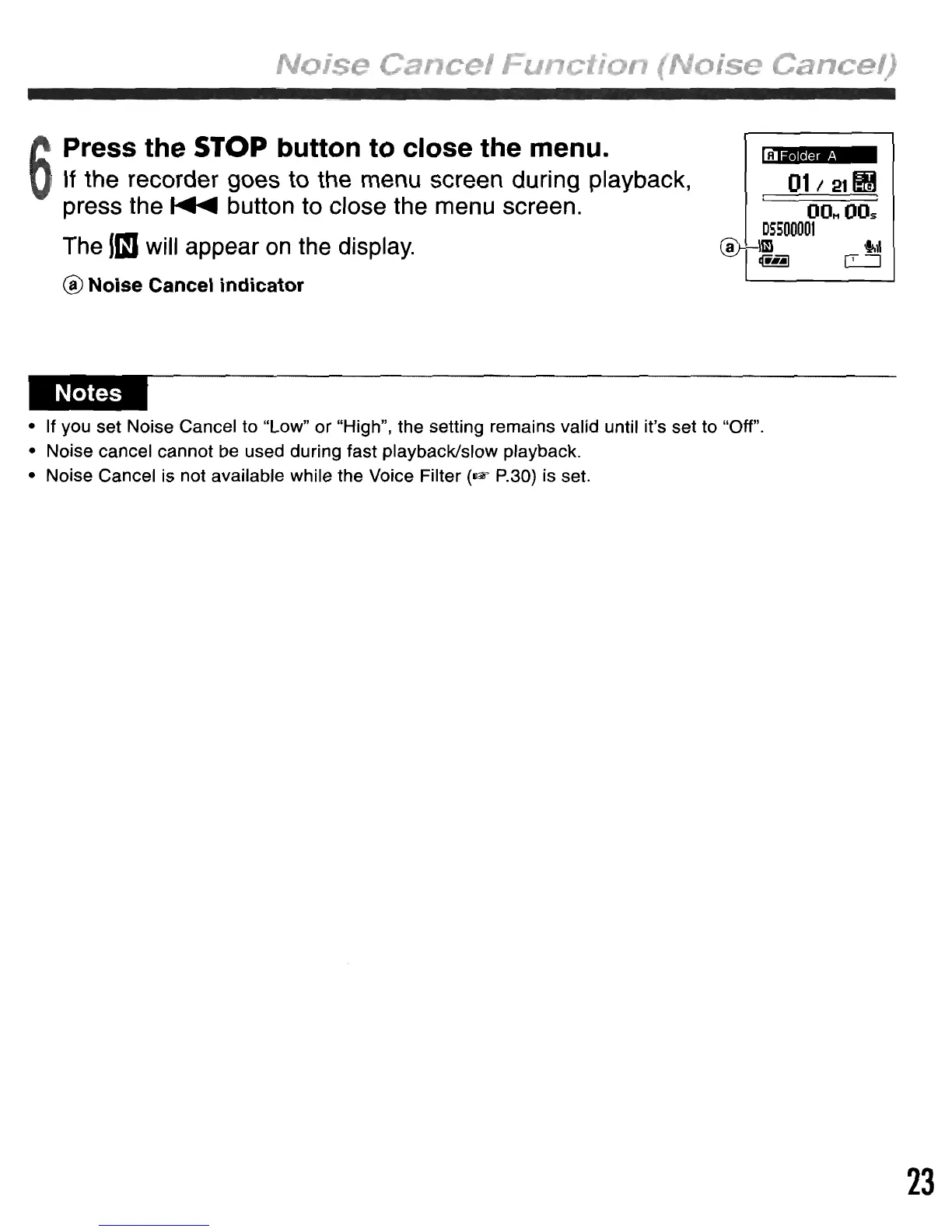 • Noise cancel cannot be used during fast playback/slow playback.