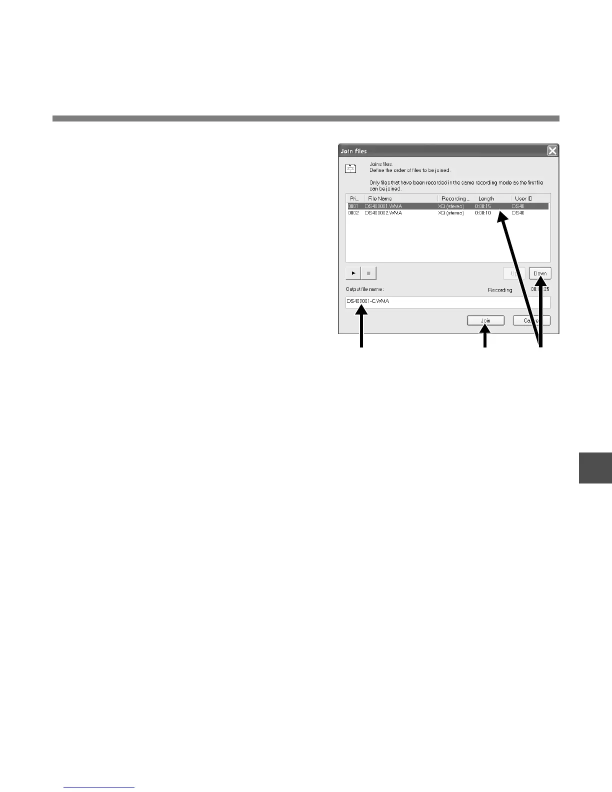 • If the files to be joined have different recording modes, the mode of the file listed at the top is selected.