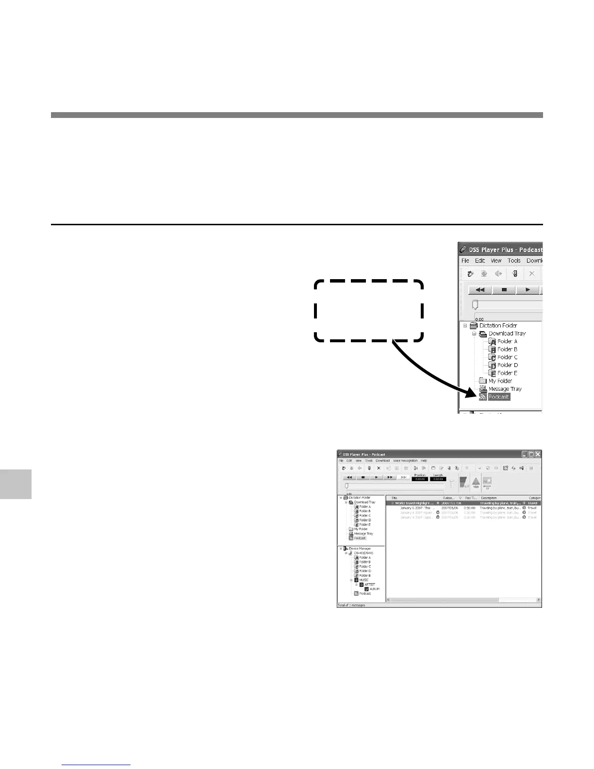 • The recorder is able to play back Podcast content in the MP3 format only. Content other than MP3